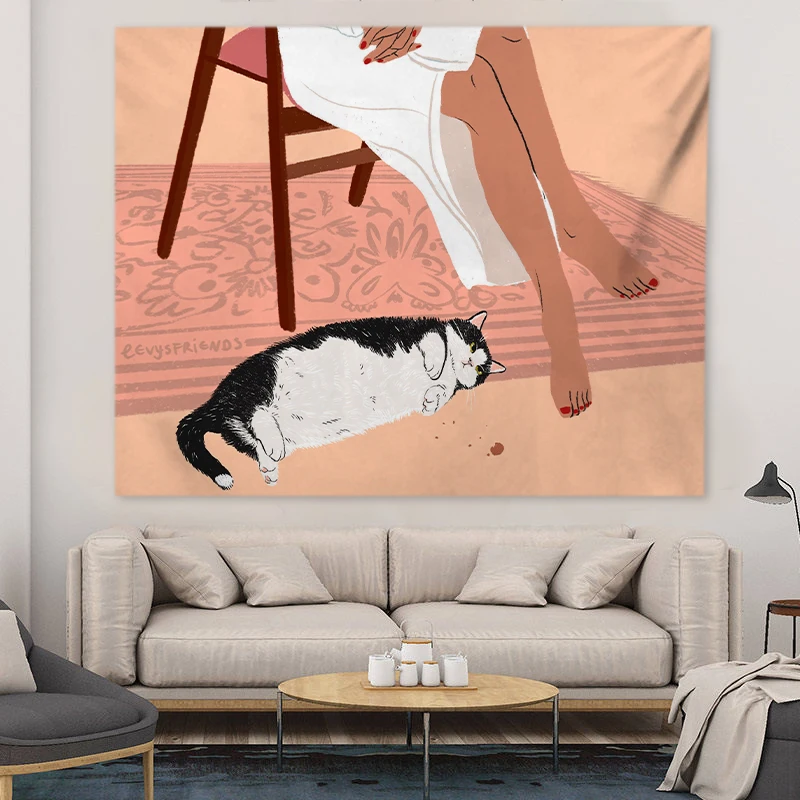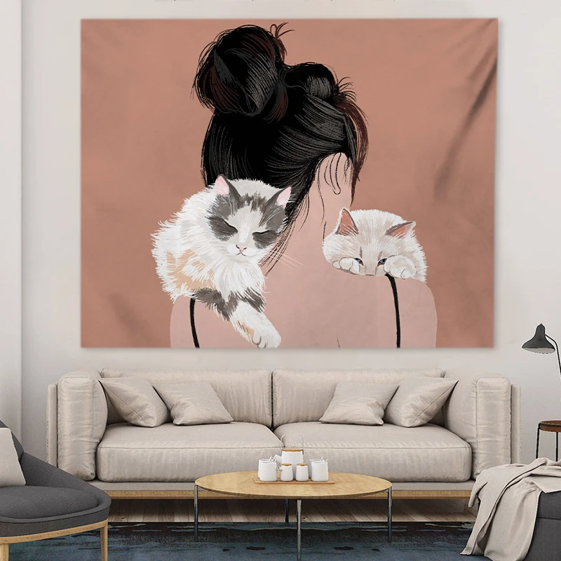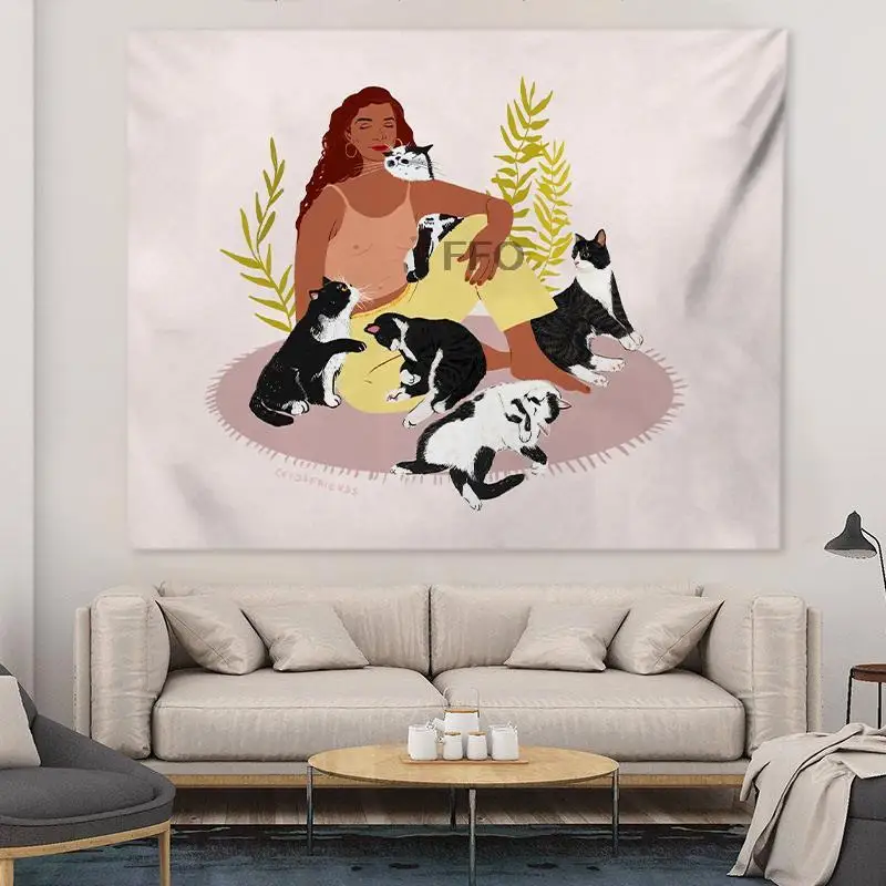 декор комнаты декор на стену макраме.хиппи.декор комнаты эстетика Котенок и кавайная Девушка искусственная стена подвесной аниме гобелен милая девушка комната Декор Мандала Бохо спальня диван одеяло коврик для йоги