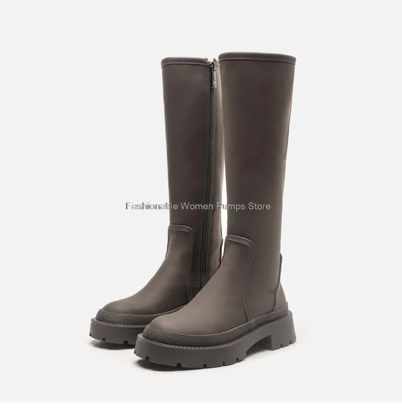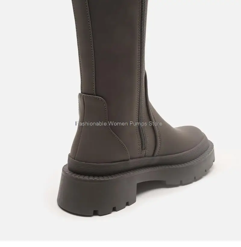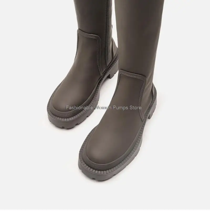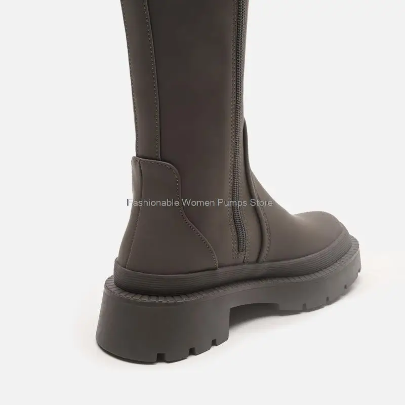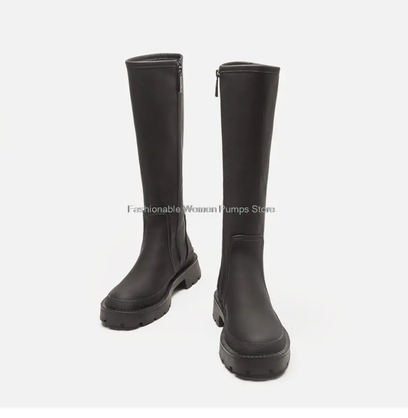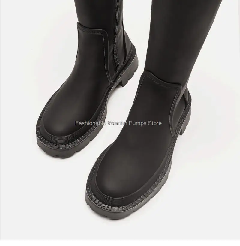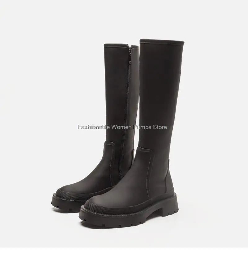 Брендовые дизайнерские женские сапоги до колена, модные длинные сапоги ZA, сапоги Челси на толстой подошве, Женская Высококачественная осенне-зимняя обувь
