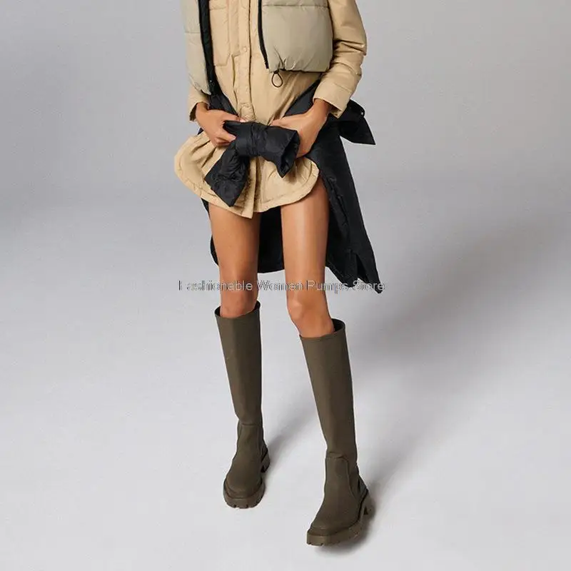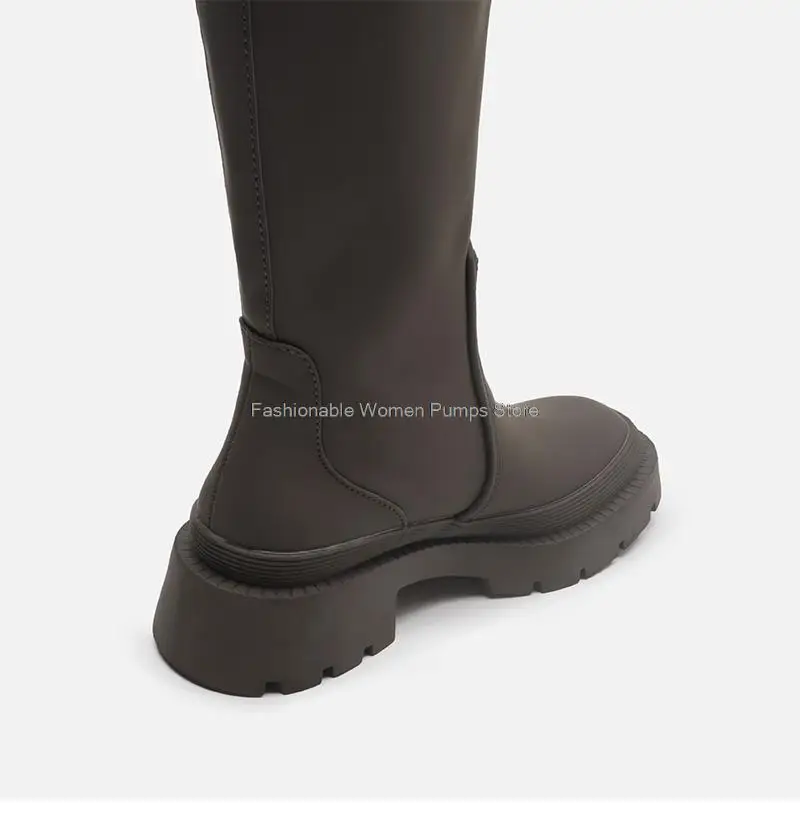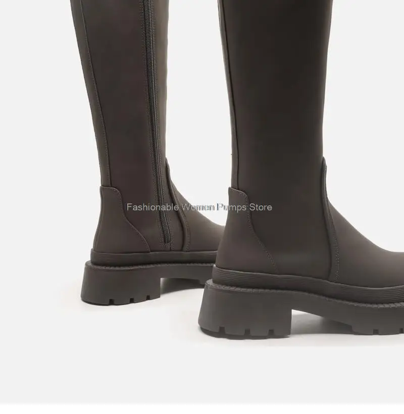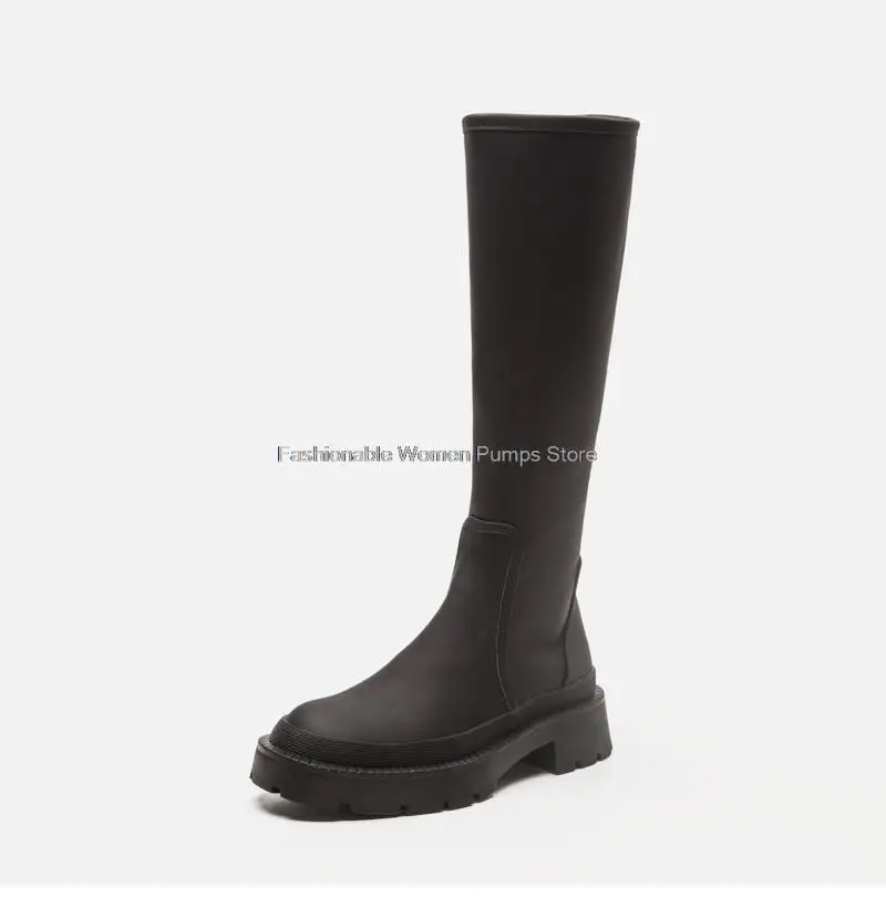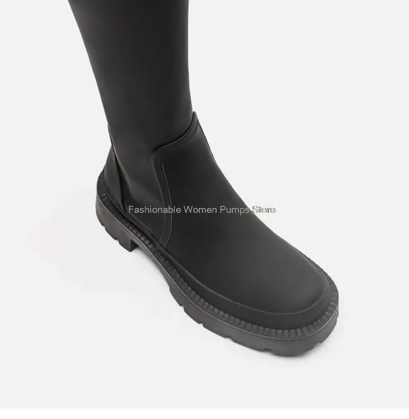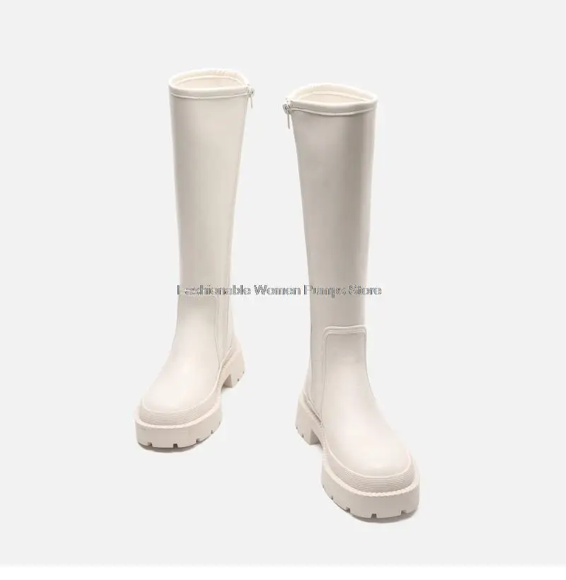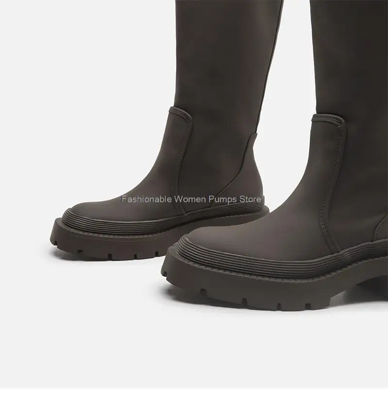 Брендовые дизайнерские женские сапоги до колена, модные длинные сапоги ZA, сапоги Челси на толстой подошве, Женская Высококачественная осенне-зимняя обувь