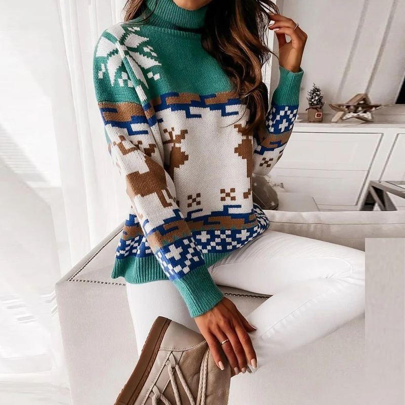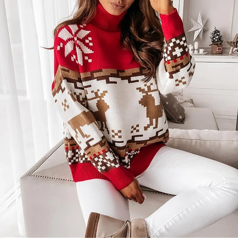 Рождественская водолазка с принтом лося, вязаный женский свитер, зимний модный теплый Свободный пуловер, свитер, женские элегантные универсальные свитера