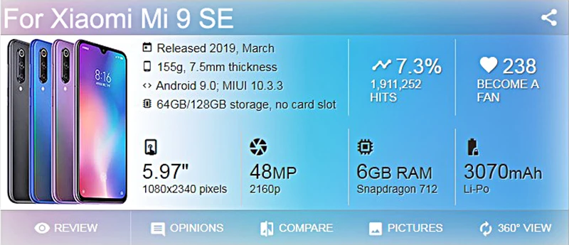 For Xiaomi mi 9 se/MI 9SE/mi9se