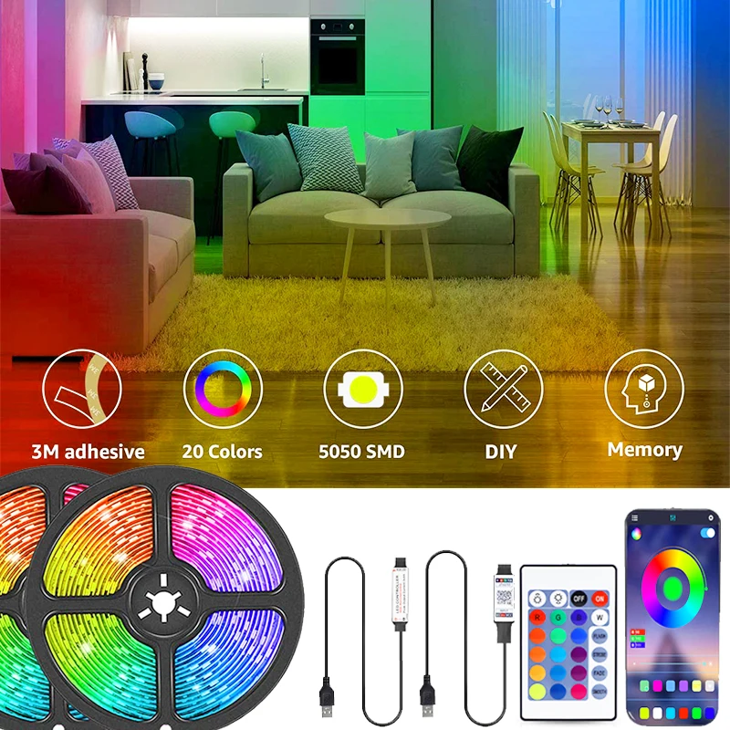 Светодиодная лента 50502835 USB 5 в RGB с Bluetooth-совместимымИК-пультом дистанционного управления