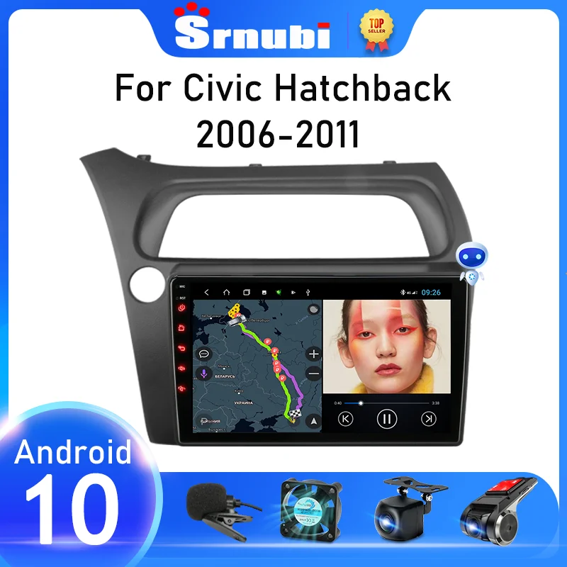 Автомагнитола Srnubi на Android 10 для Honda Civic Hatchback 2005-2011, мультимедийный видеоплеер, навигация GPS, 2 Din, аудио, DVD