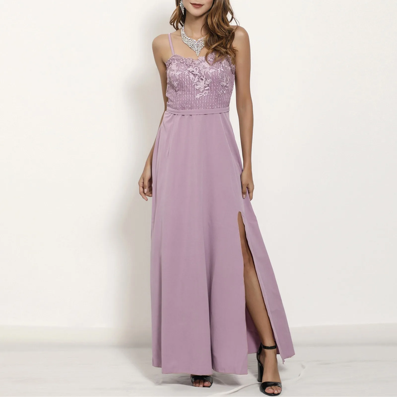 Длинное однотонное платье на тонких бретельках, сексуальное женское элегантное кружевное платье на бретельках, свадебное платье подружки невесты с разрезом, Jurken # G4, 2021