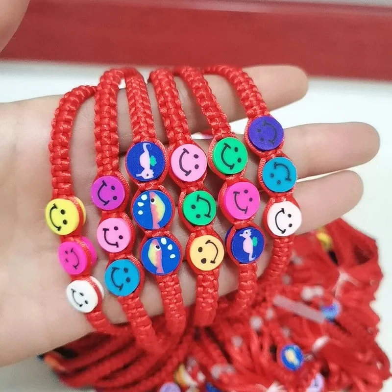 10 шт., браслет счастливого лица для женщин, красочные браслеты на ...