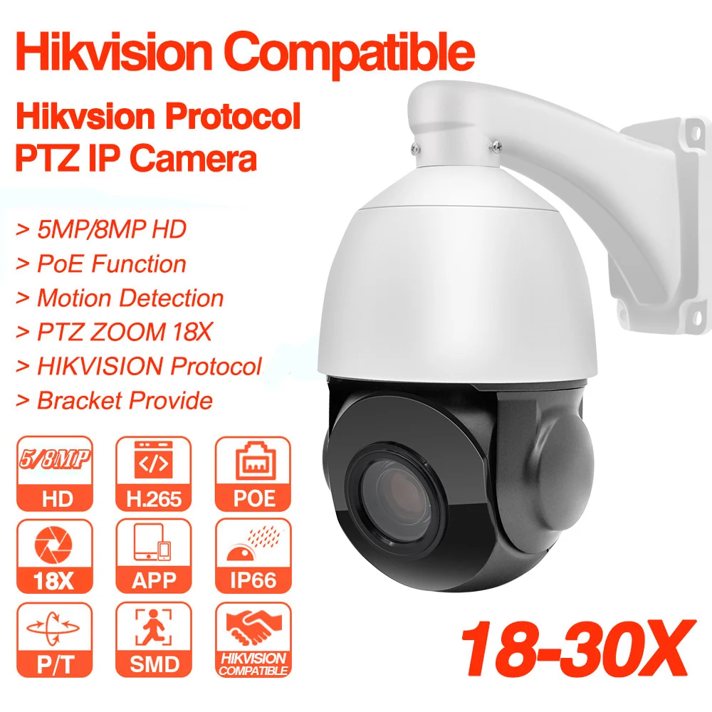 Hikvision совместимая с PTZ IP-камерой 5 Мп 8 Мп 18X-30X зум водонепроницаемая купольная камера наружная ИК 50 м H.265 IP-камера видеонаблюдения