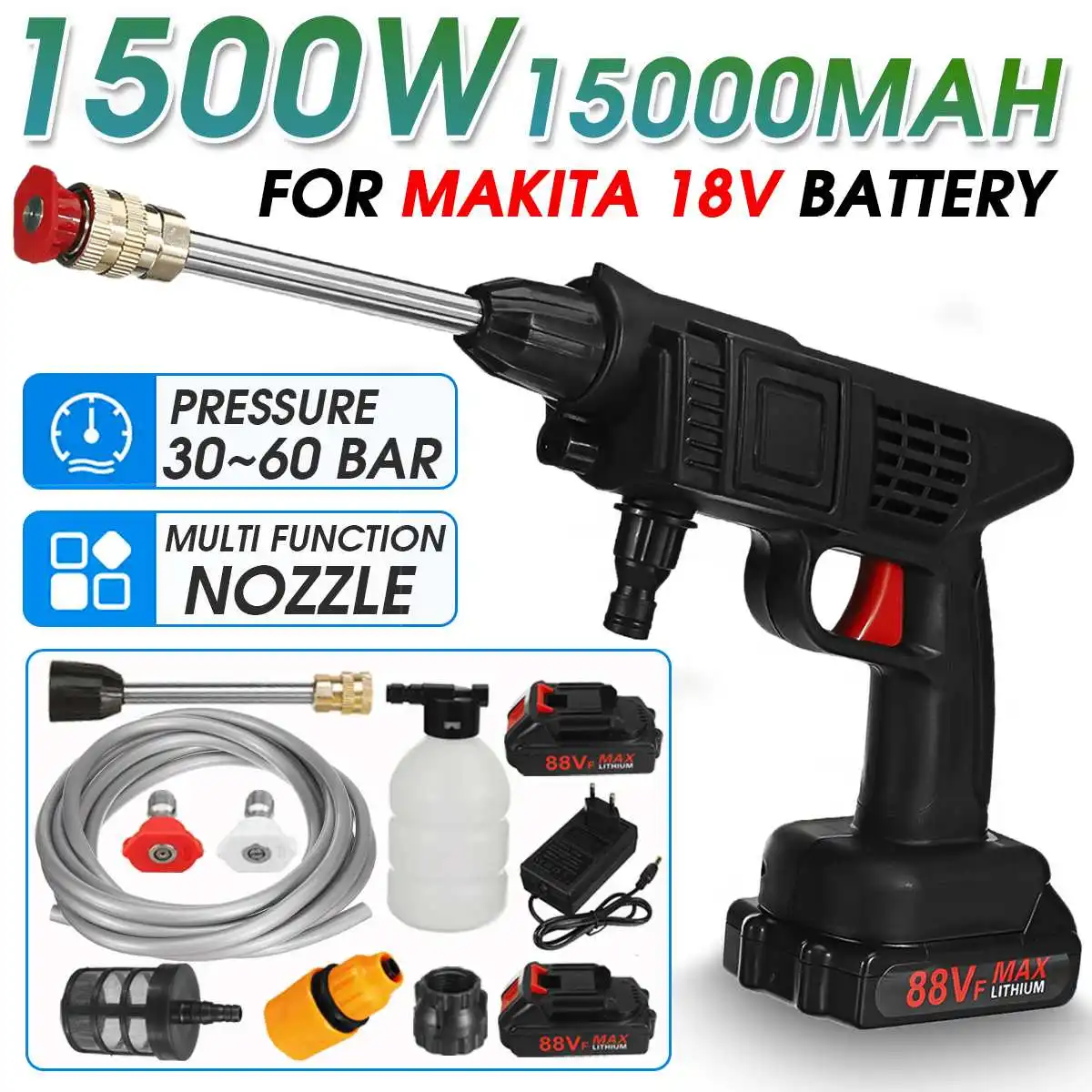 Аккумуляторный пистолет для мойки автомобиля под высоким давлением, 60 бар, 1500 Вт, 18 в