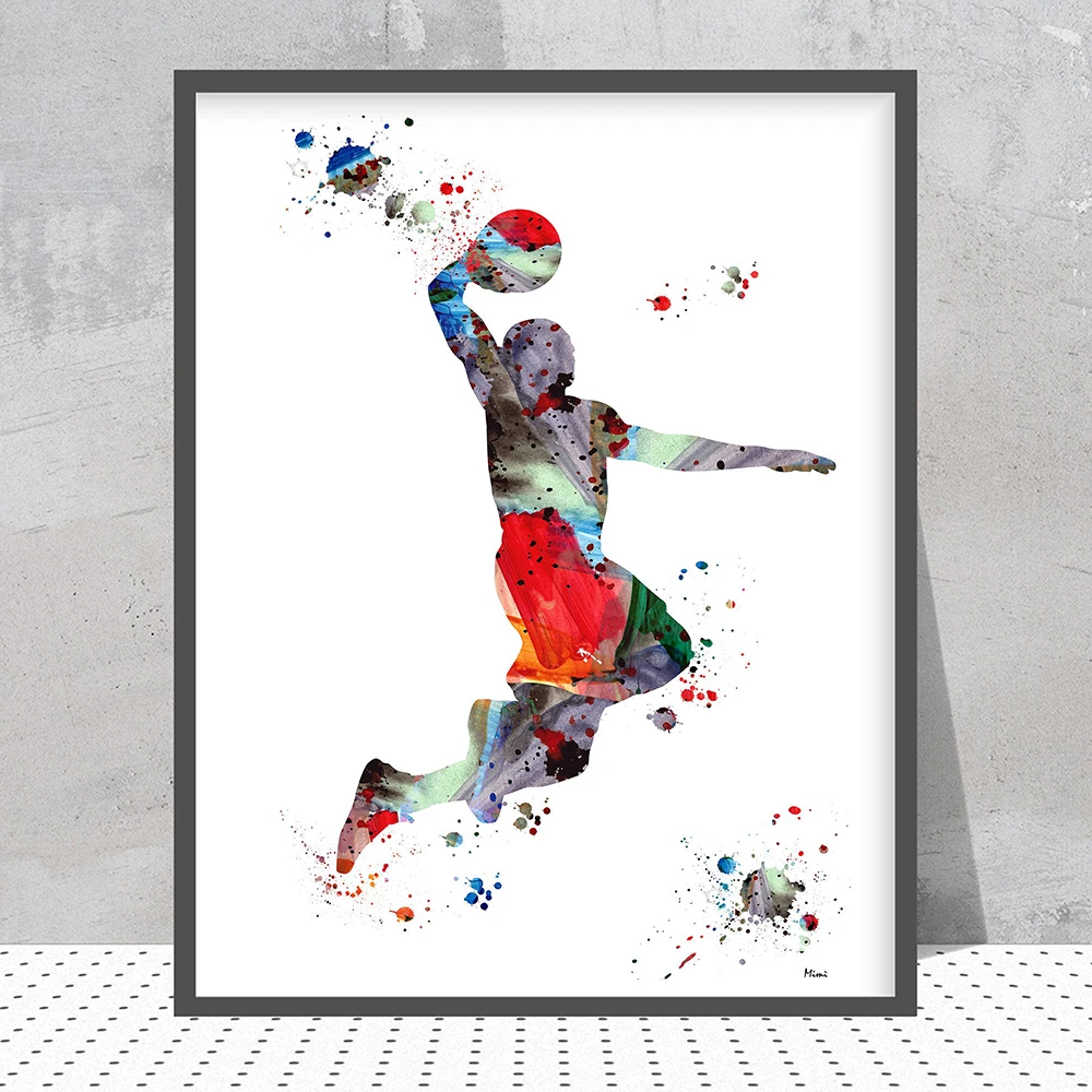 Акварельная Спортивная живопись, печать на холсте, настенные художественные плакаты Slam Dunk, декоративная фотография для гостиной, домашний декор