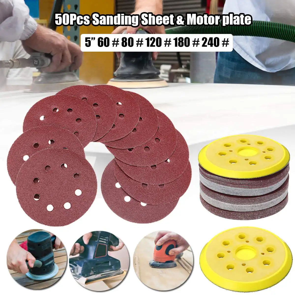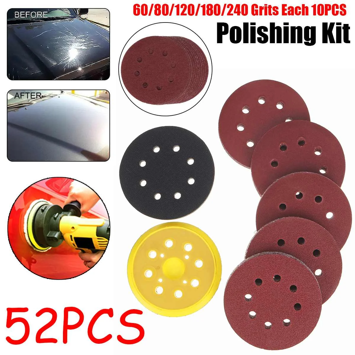 Новинка 52 шт. 5 дюймов 125 мм круглая наждачная бумага диск с восемью отверстиями пескоструйные листы зернистость 6080120180240 крючок и петля шлифовальный диск Полировочная подушка