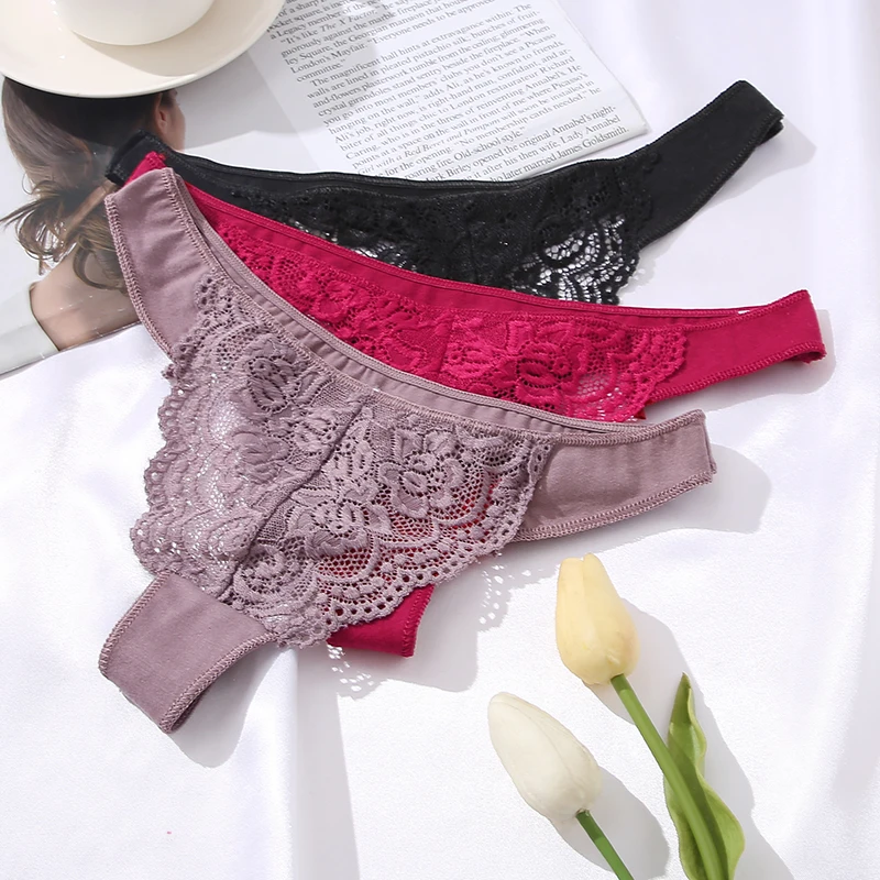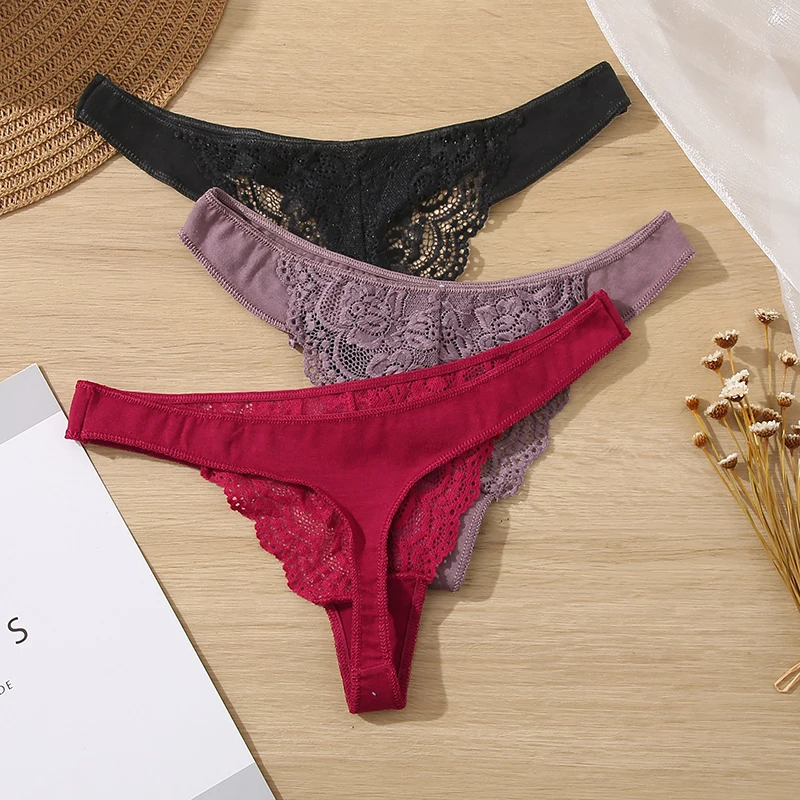Стринги женские кружевные, с низкой талией, бесшовные, из дышащего хлопка, 3 шт., M-XL