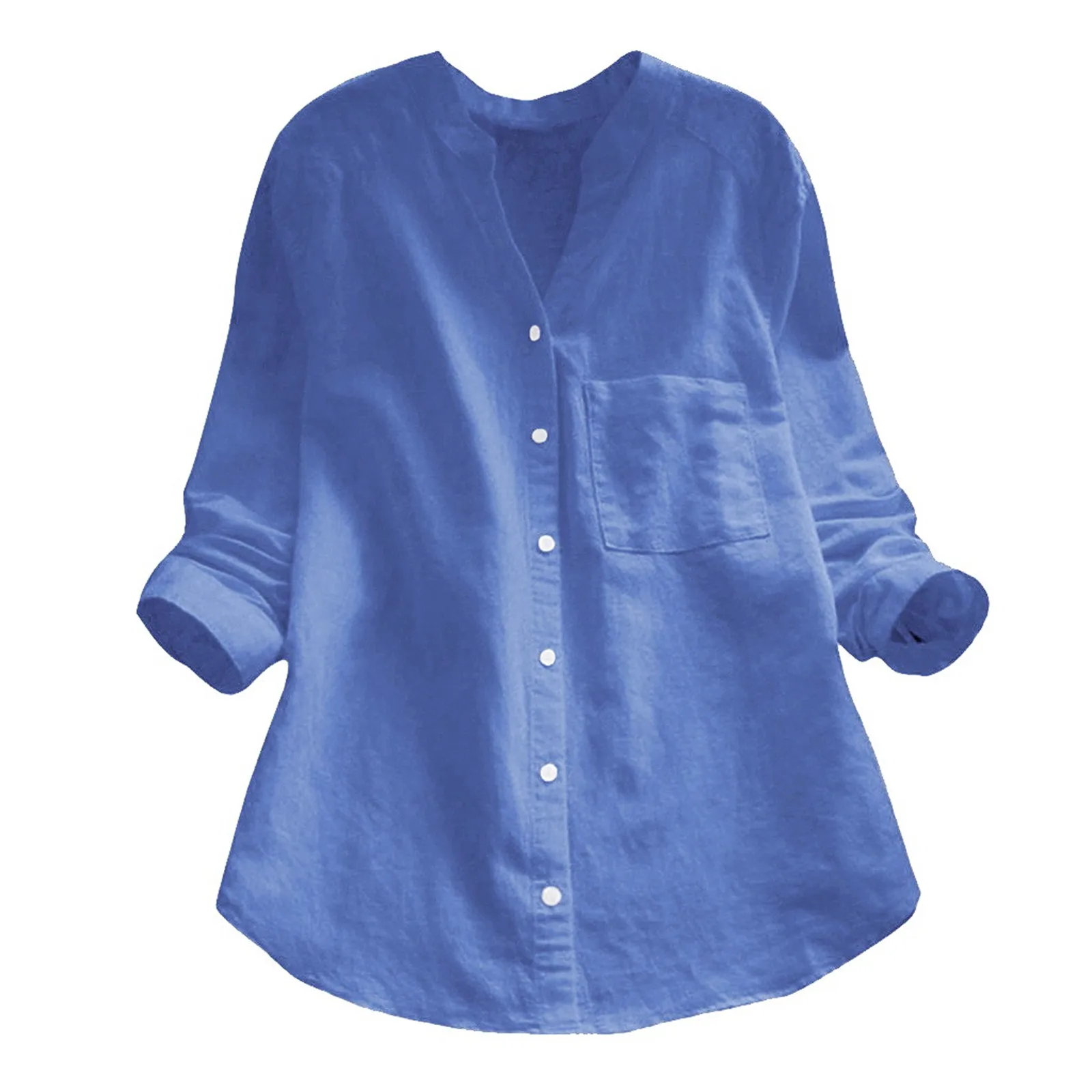 Женская модная Однотонная рубашка на пуговицах с V-образным вырезом и длинным рукавом, Повседневная рубашка из хлопка и льна с карманами, украшение для женщин