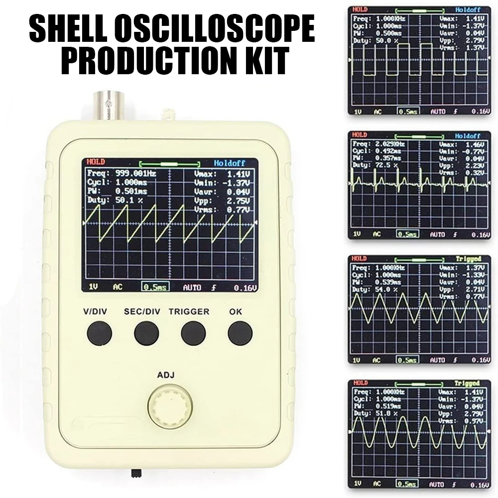 Этот цифровой осциллограф имеет аналогичную полосу пропускания DSO138, но содержит значительные улучшения в конструкции, механизме и работе. Он отличается высокой чувствительностью, светильник и удобный для переноски размер, 2,4 дюйма TFT экран и защитный чехол. Он может отображать параметры формы волны, такие как частота, период, ширина импульса, коэффициент нагрузки, Макс./мин./AVG./пиковые/виртуальные значения.