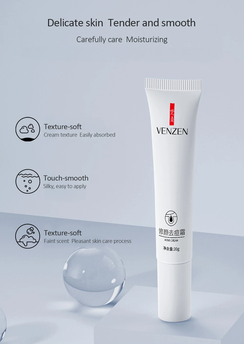 -Название продукта: Средство для удаления акне VENMZEN-Спецификация: 20 г-Срок годности: см. Этикетку для ограниченной даты использования-Подходит; Различные типы кожи-Эффективность продукта: содержит Ниацинамид, экстракт алоэ вера и т. Д. Текстура чистая и тонкая, легко впитывается, может улучшить склонность к акне, сухую и грубую кожуУдаляет акне, увлажняет и отличноVENZEN крем для восстановления акне