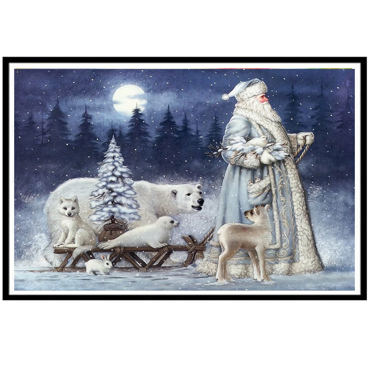 5d круглая алмазная живопись с Санта-Клаусом и животными, алмазная ...