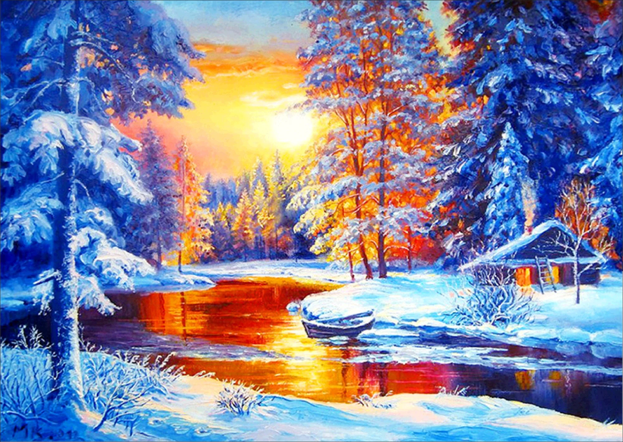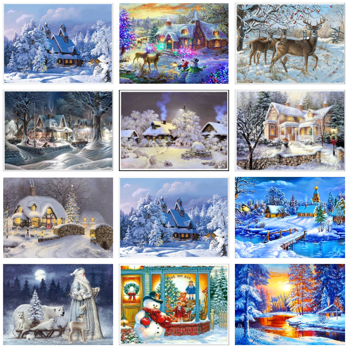 Алмазная живопись сделай сам на зиму, алмазная вышивка 5d с изображ...