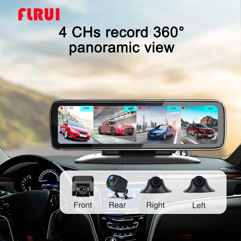 2021 новейшие 4 камеры Запись ночного видения Автомобильный видеорегистратор 360 градусов вид 12 дюймов сенсорный экран Умные зеркальные видеорегистраторы 4 Разделенный экран