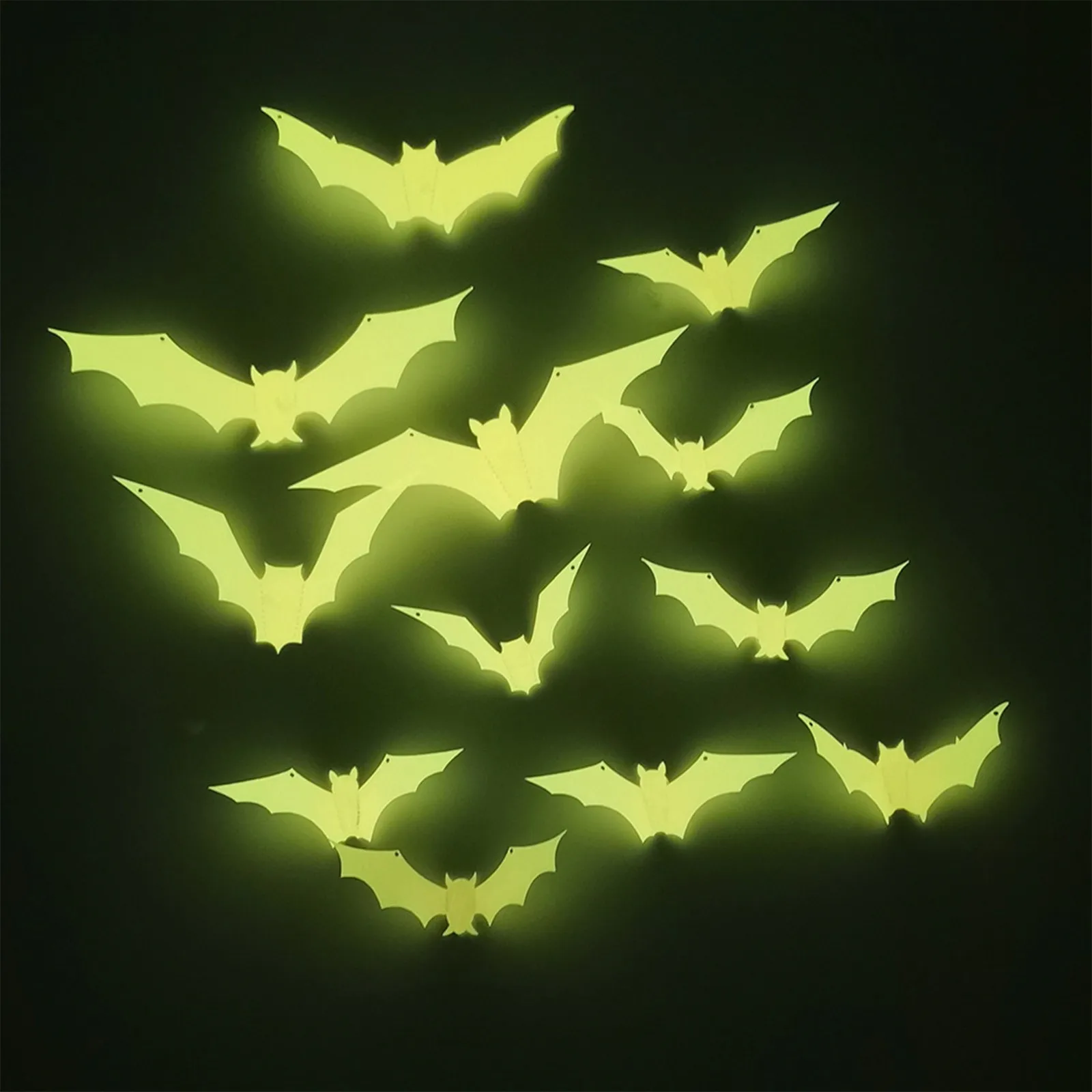 Светящиеся 3d-наклейки с летучей мышью, 12 шт., для Хэллоуина, стра...