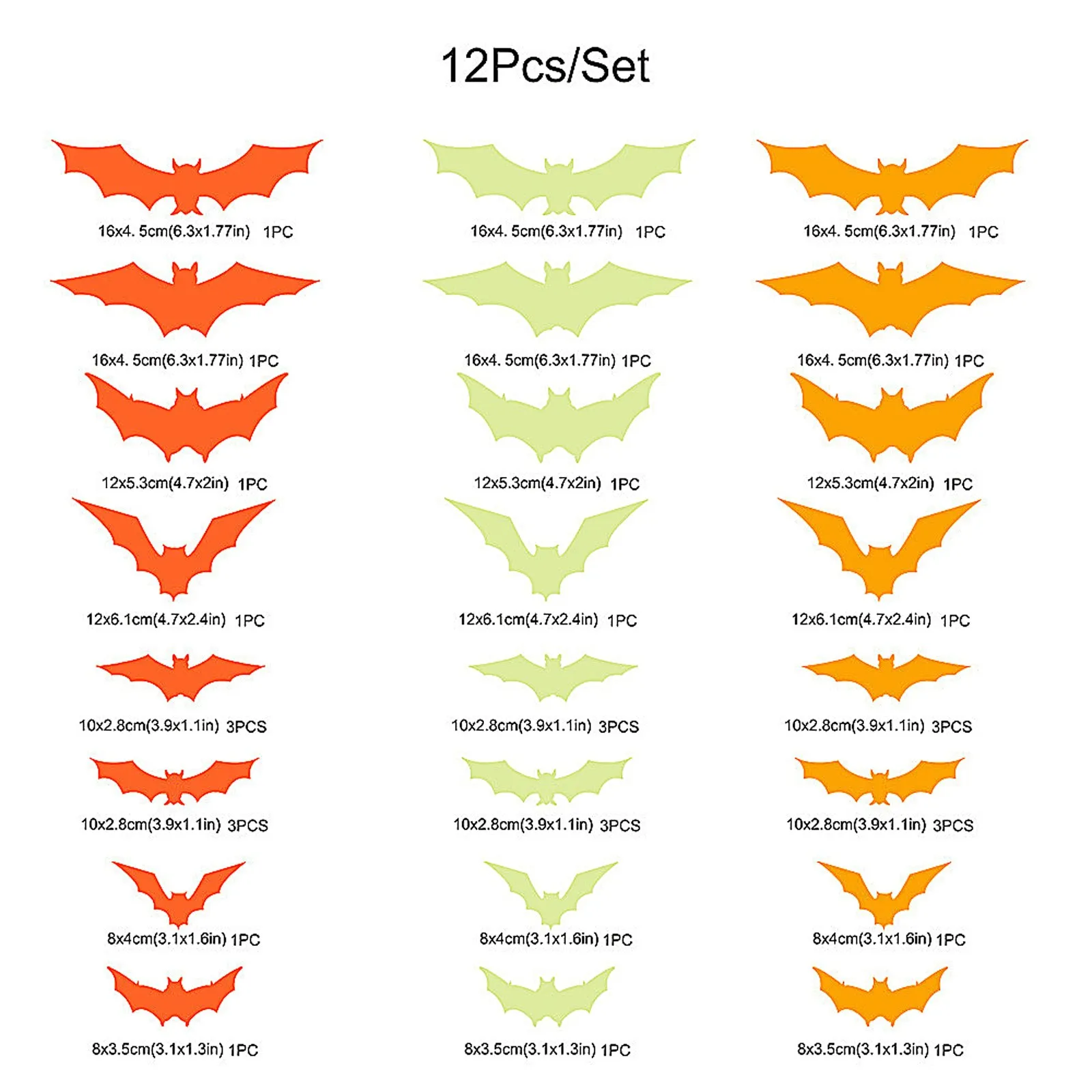 12 шт.компл. 3d светящаяся летучая мышь наклейки на стены для празднования Хэллоуина украшение для вечерние ПВХ наклейки для гостиной окна домашний декор настенные наклейки