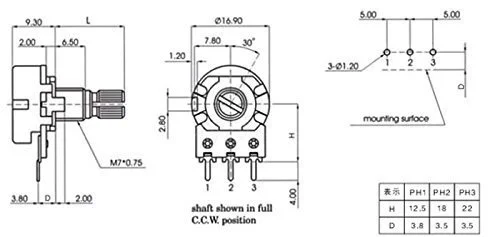 WH148, B1K, B2K, B5K, B10K, B20K, B50K, B100K, B500K, 3-контактный ...