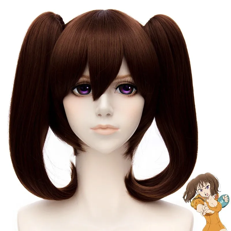 Парик для косплея Диана из семи смертных грехов, термостойкий, с коричневыми двойными хвостиками, для Хэллоуина