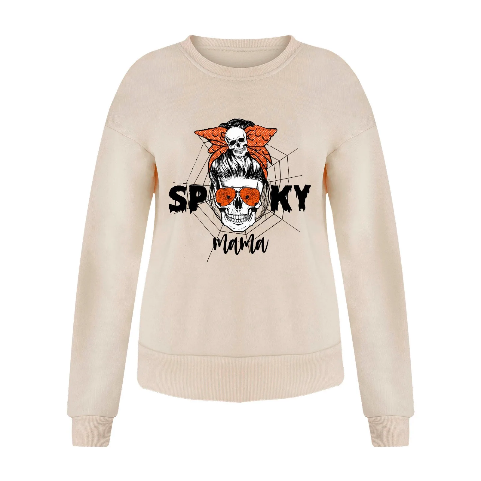 Новинка размера плюс толстовки для Хэллоуина женские осенне-зимние толстовки с принтом черепа и буквами винтажный пуловер с круглым вырезом