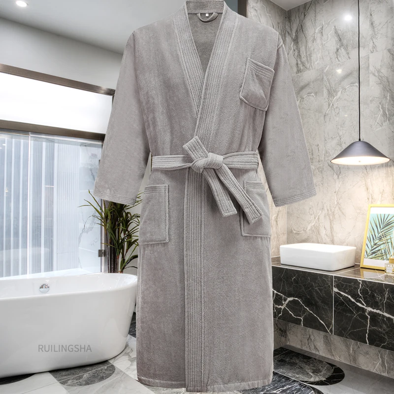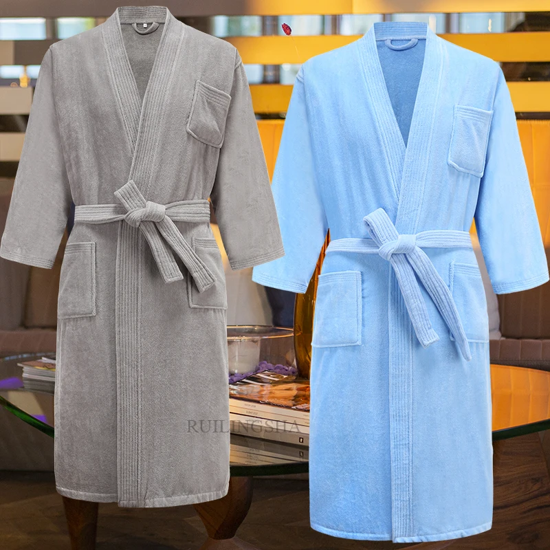 Новое полотенце для пота из 100% хлопка, банные халаты, мужское зимнее кимоно, теплый халат, Мужская махровая одежда для сна, женский халат
