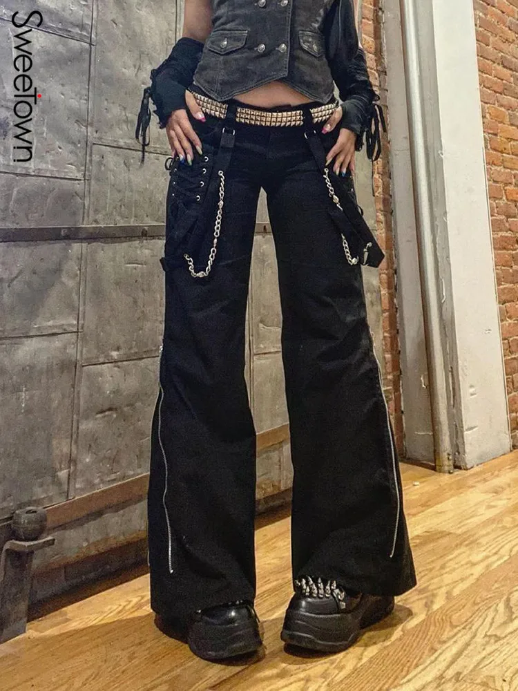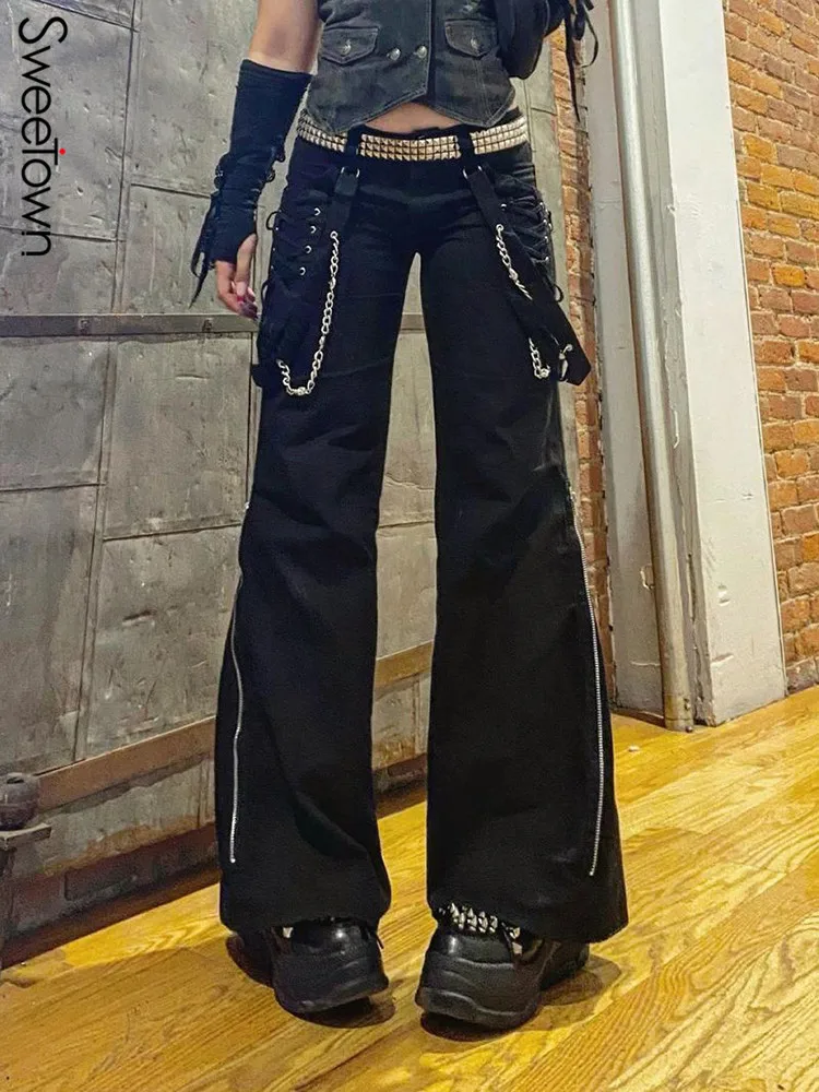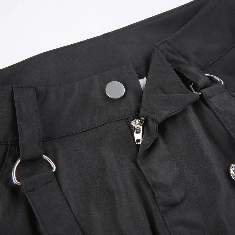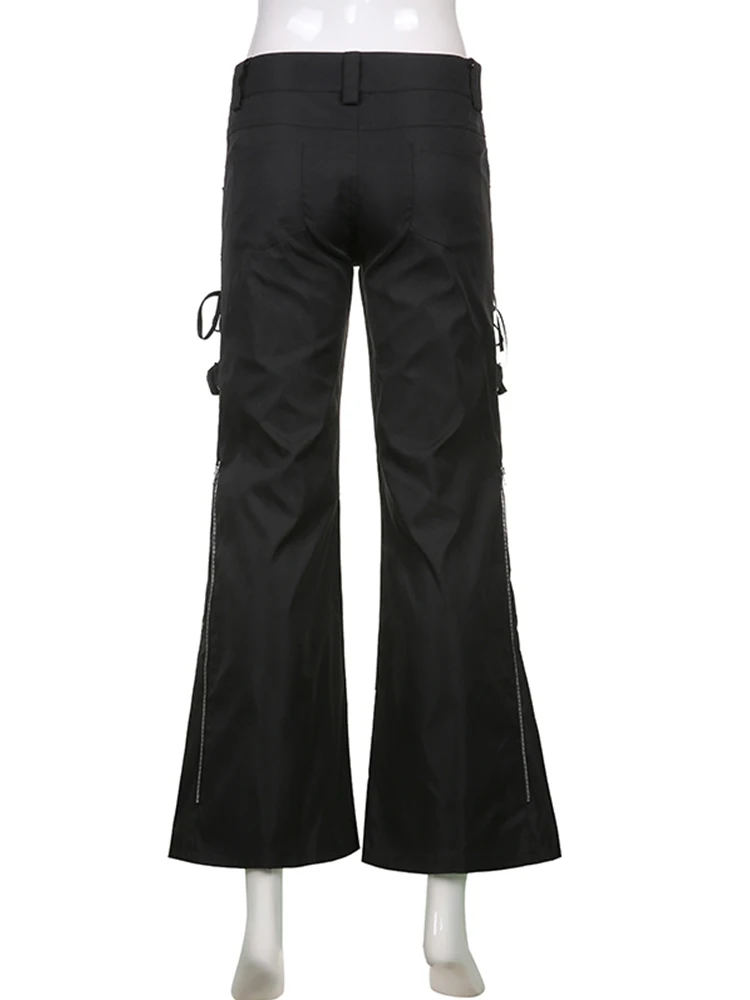 Брюки-карго женские черные с заниженной талией и широкими штанинами