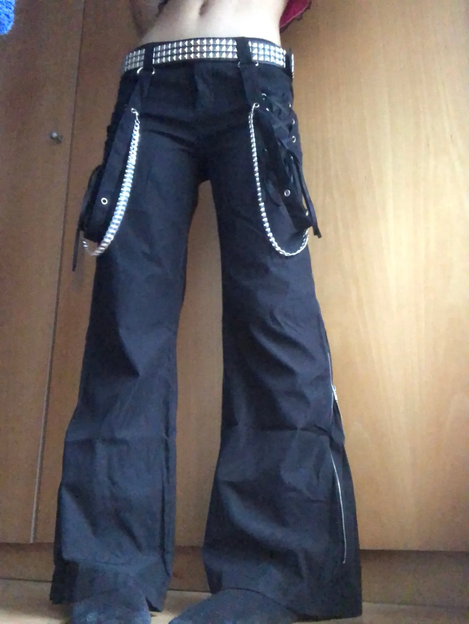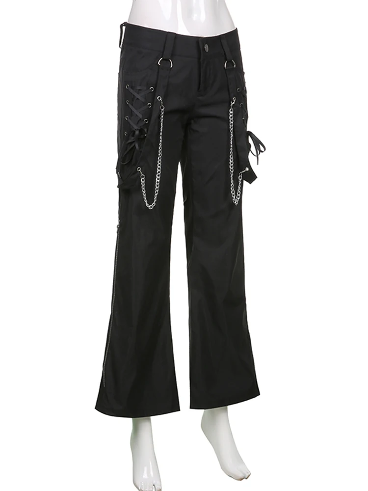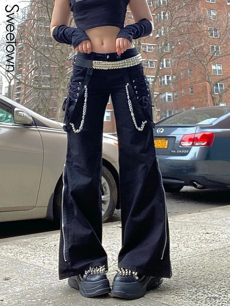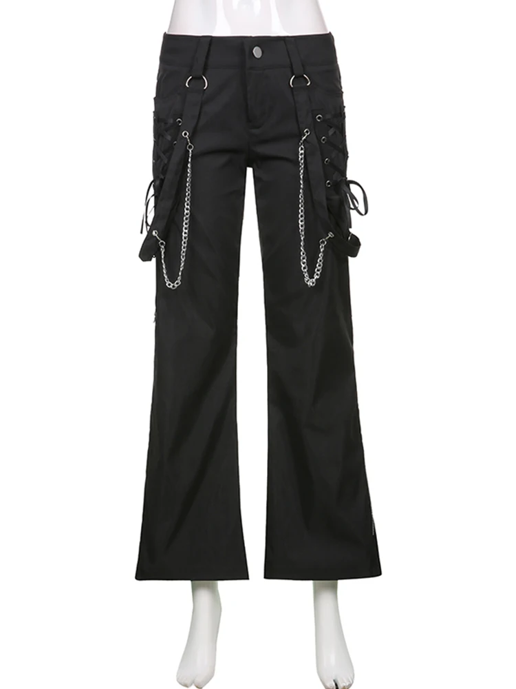 Брюки-карго женские черные с заниженной талией и широкими штанинами