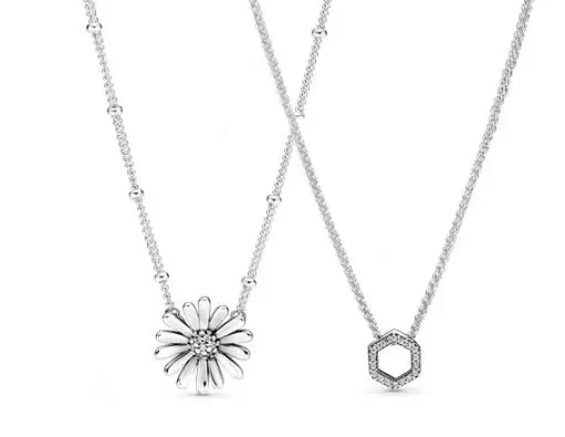 Женское шестигранное колье в виде цветка ромашки из серебра 925 пробы