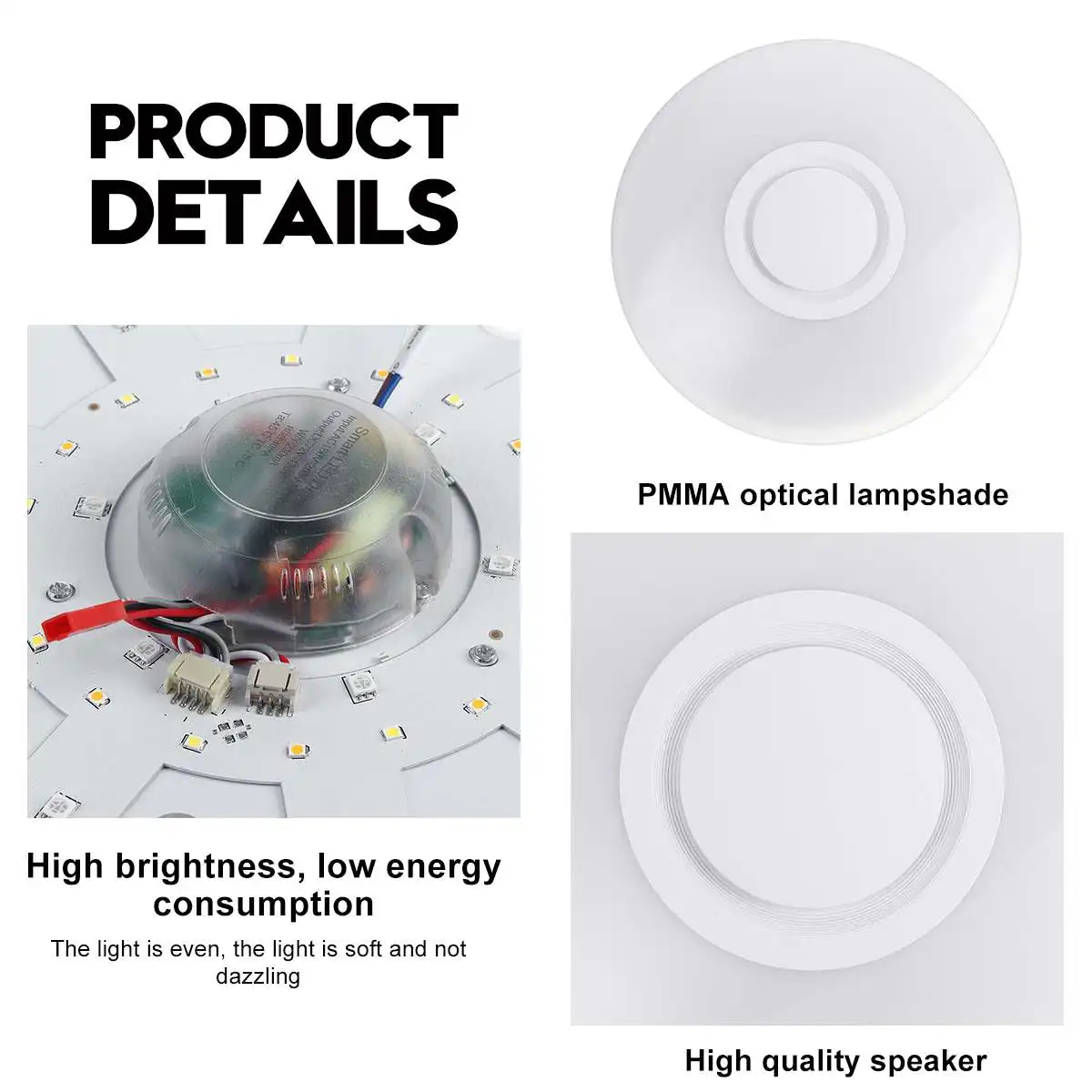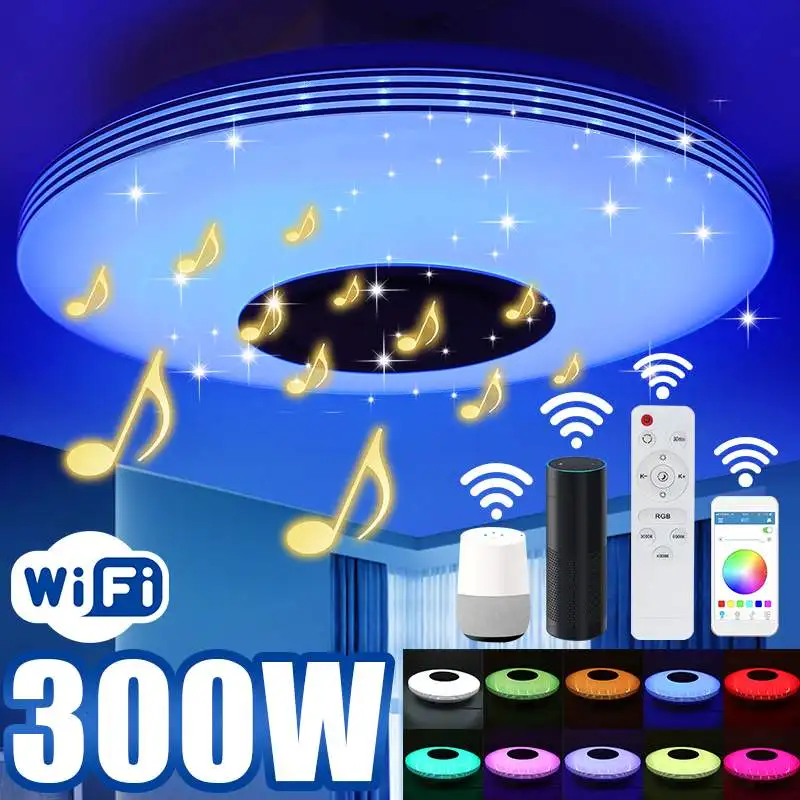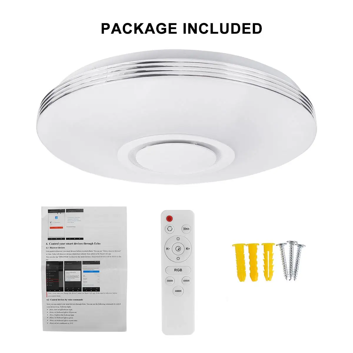 Посылка включает в себя:1x умный светодиодный потолочный светильник1x набор монтажных аксессуаров1x пульт дистанционного управленияСпецификация:Напряжение: 110-245 В/50-60 ГцМощность: 300 ВтДиаметр стрелка: 39 см/15,4 дюймаРежим управления: настенный выключатель + управление мобильным приложением + пульт дистанционного управления + интеллектуальное аудио управлениеСветильник режимы: подстраиваются под тусклый или яркий, ритм музыки прозрачный градиентный фон красочный flashinging светильникВерсия Wi-Fi: Поддержка amazon, google, Tmall Genie, Xiaodu и другого интеллектуального Аудио управления, мобильный пульт дистанционного управленияОсобенности:* Изготовлено из Высококачественная светодиодная микросхема, толстый акрил, который обеспечивает долгий срок службы, долговечный для использования.* Умное управление: светильник может управляться различными способами, такими как настенный выключатель, мобильное приложение и пульт дистанционного управления, что обеспечивает более удобство управления.* Мульти-Режим работы: он имеет много режимов, белый светильник, теплый светильник, нейтральный светильник, прочный светильник, режимы сцены, такие как музыкальный ритм, градиент, красочный светильник с подсветкой, чтобы удовлетворить ваши различные потребности гибко, очень практично для вашей повседневной жизни.* Мобильное приложение и bluetooth могут регулировать яркость, менять цвет, пульт дистанционного управления может включать и выключать светильник, регулировать яркость и цвет, воспроизводить песни, регулировать громкость, это такой умный потолочный светильник, который изменит вашу концепцию на потолочный светильник, Это как верный компаньон, который позаботится о вашем настроении.* Энергосбережение: с ярким источником высокой мощности Светодиодный светильник, экономия большой мощности по сравнению с тем же уровнем яркости нормальный светильник, который не применяется светодиодный чип, экологически чистый.* Умное управление: это приложение доступно для устройств Apple Iphone, Ipad и Androids.