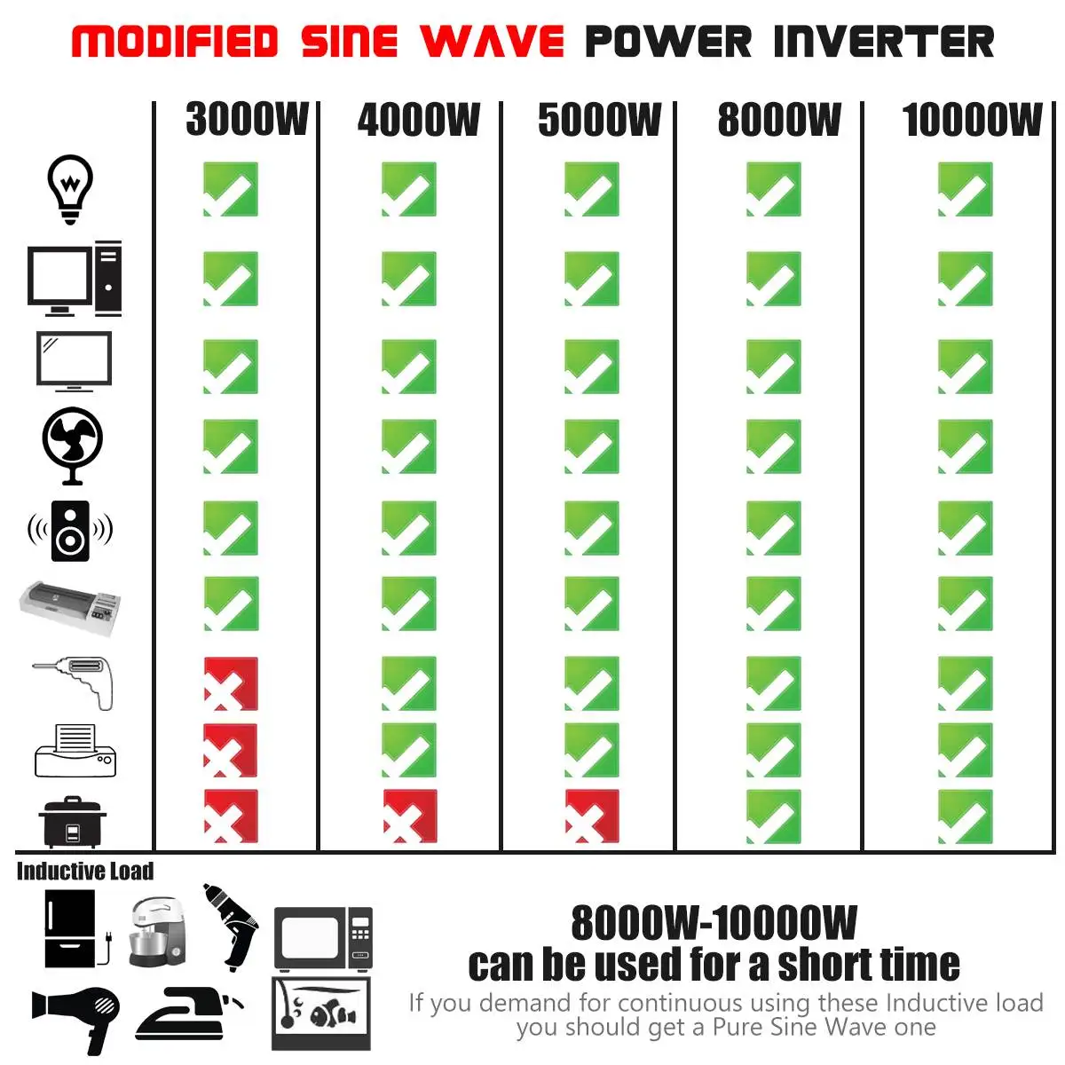 Посылка включает в себя:1*4000W DC12/24V к AC110V/220V солнечный инвертор1 * кабель с зажимом1 * Автомобильное зарядное устройство