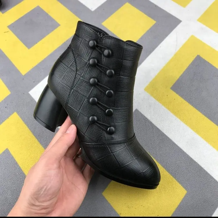 Зимние женские ботильоны, черные кожаные, коллекция 2021 года, модн...