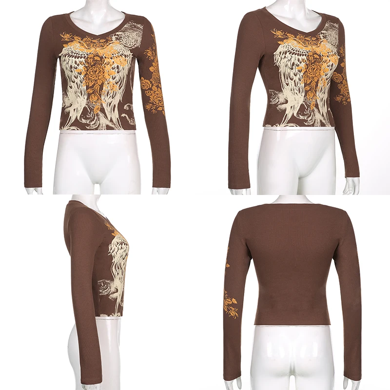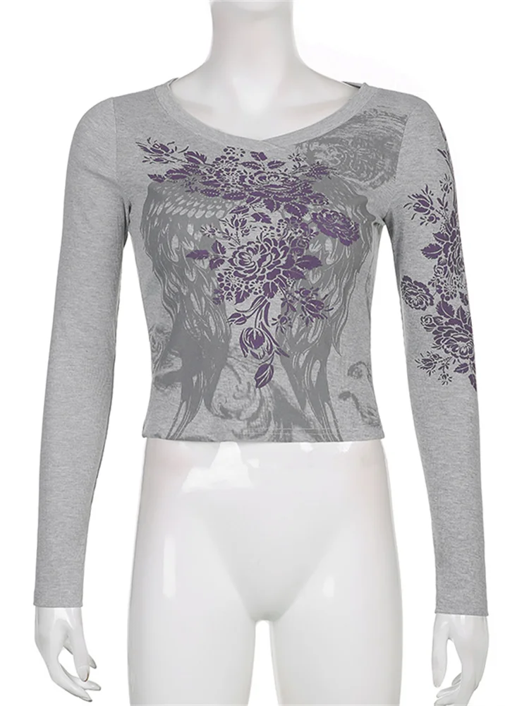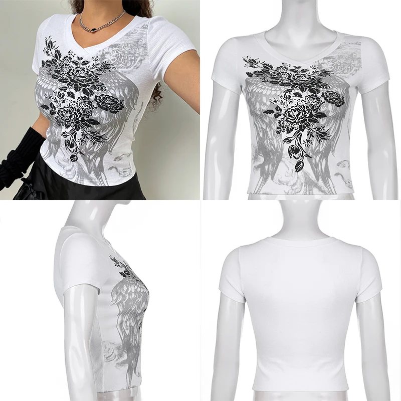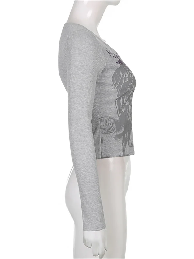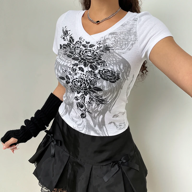 Ретро гранж футболки Fairycore Harajuku графический принт серые милые повседневные футболки уличная одежда темные академические Топы cuteandpsy