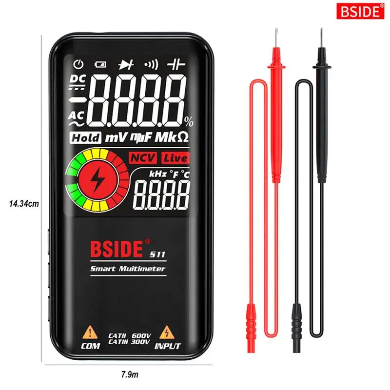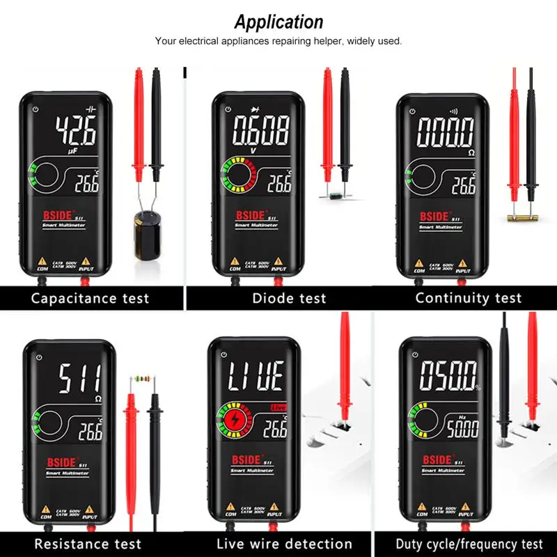 Мультиметр BSIDE S11, цифровой мультиметр с ЖК-дисплеем 9999 отсчетов, с перезаряжаемой батареей