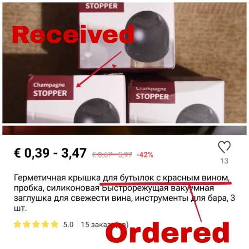 В описании товара указано, что это пробки для красного вина. А отправляет продавец пробки для шампанского. В компенсации по спору отказывает. Это однозначно обман покупателей, не добросовестный продавец, не рекомендую.