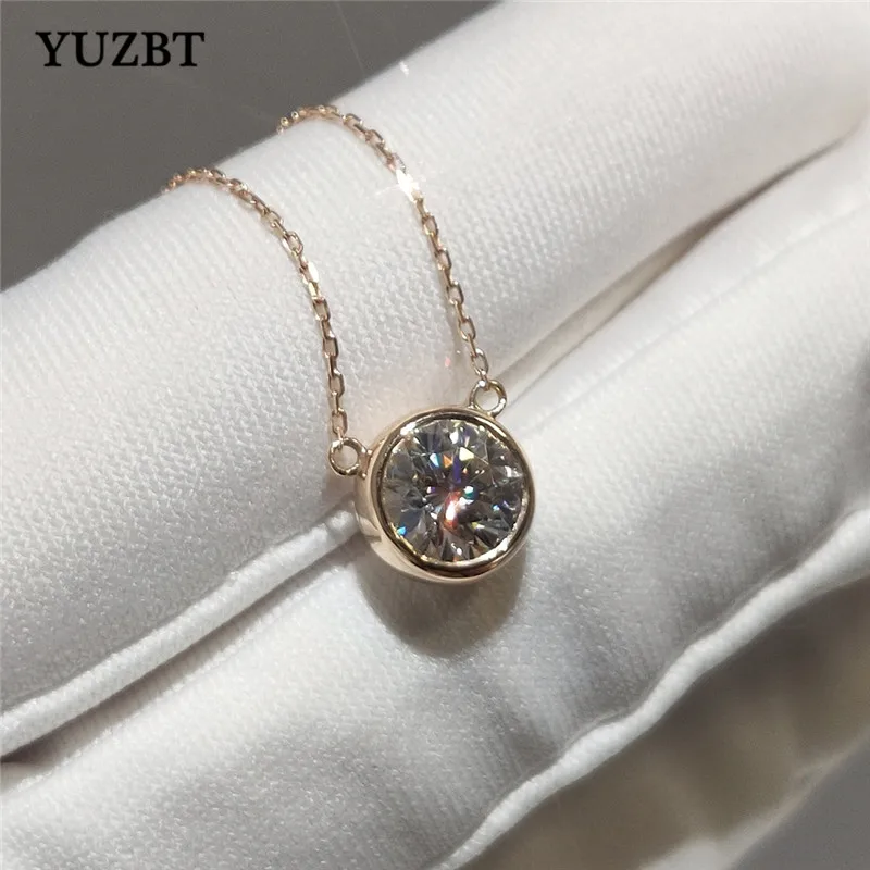 YUZBT ожерелье с кулоном в форме пузырька из драгоценного камня 18 карат с покрытием из розового золота 1 карат, бриллиант, проверенный на Муассанит цвета D