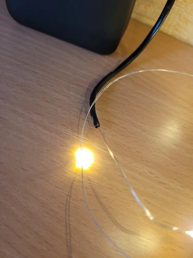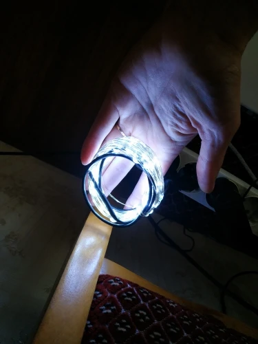 получено. Работают. Но изделие крайне хилое - капли клея со светодиодами не охватывают провода - они лежат на проводах. Предположу что попытавшись отогнуть провод в точке входа в клей - они отвалятся.