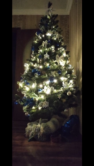 На фото на рождественской елке.
