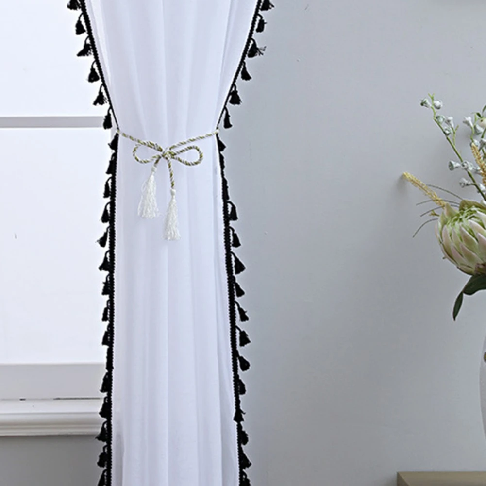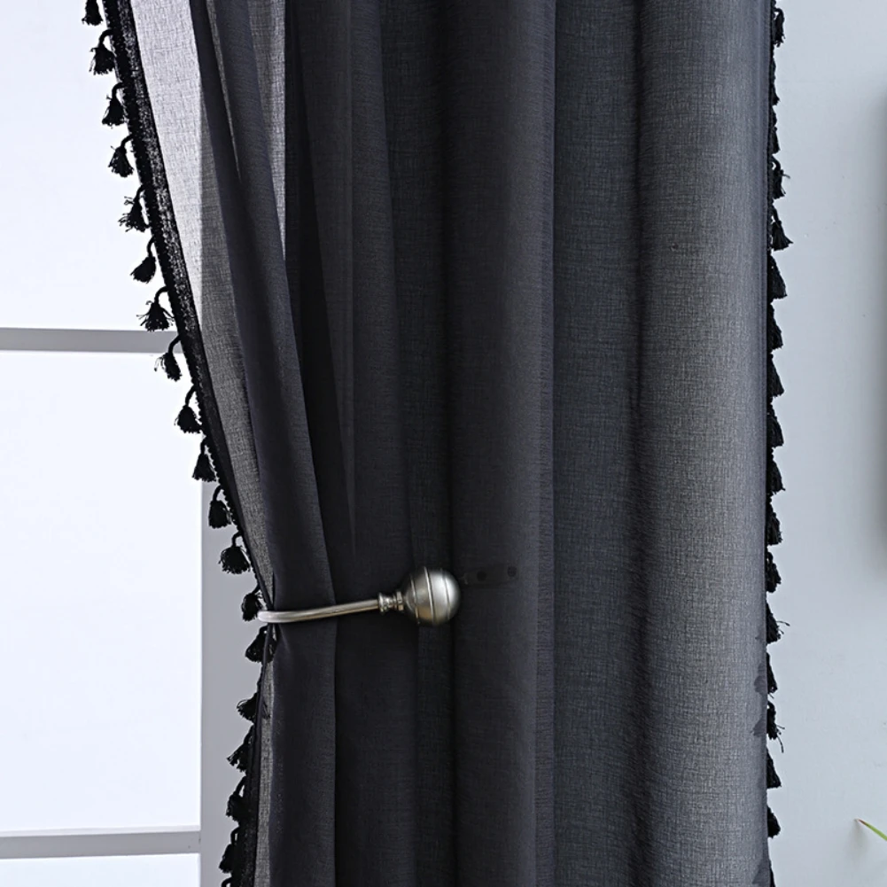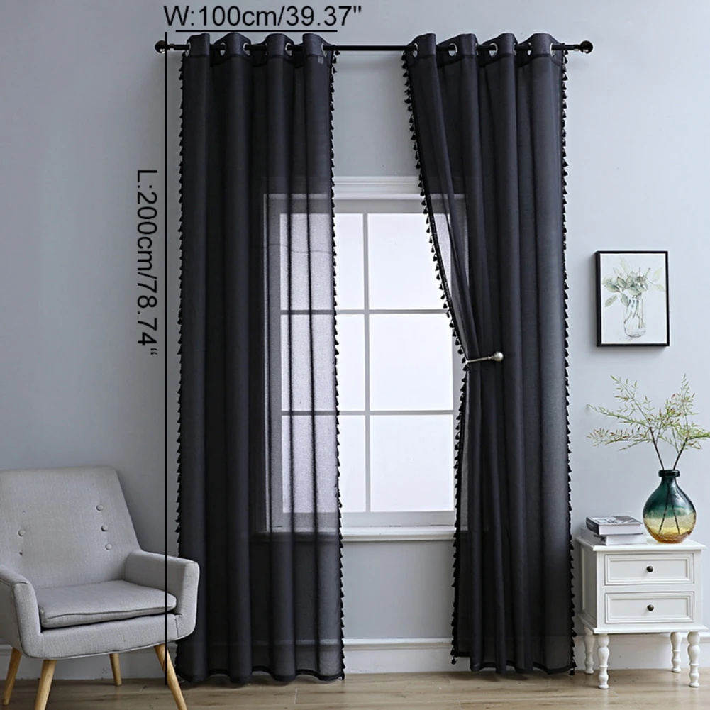 Однотонные шторы с кисточками для окон, затемняющие, из смесового хлопка, занавески в стиле бохо, для гостиной, спальни, полупрозрачные