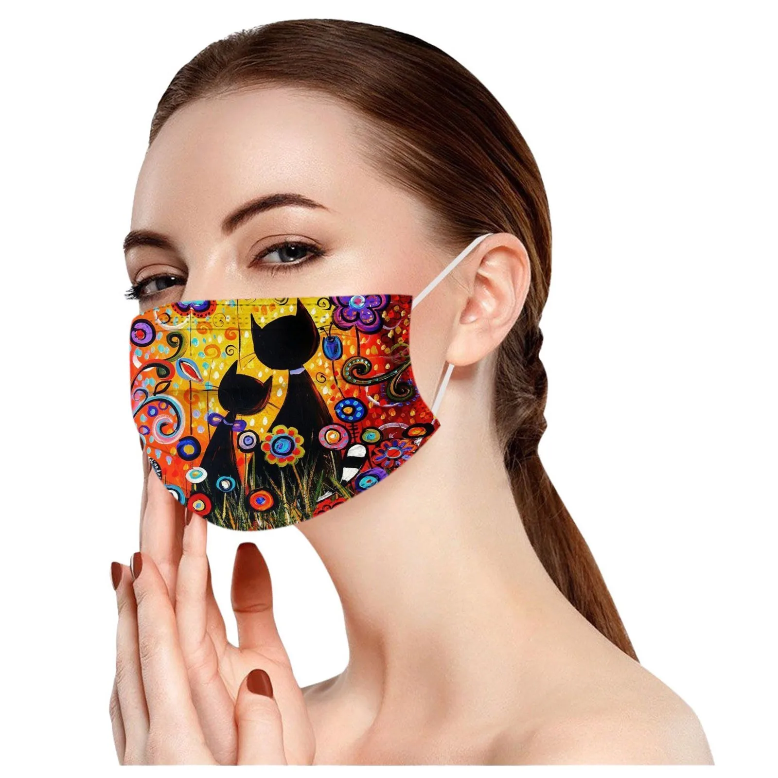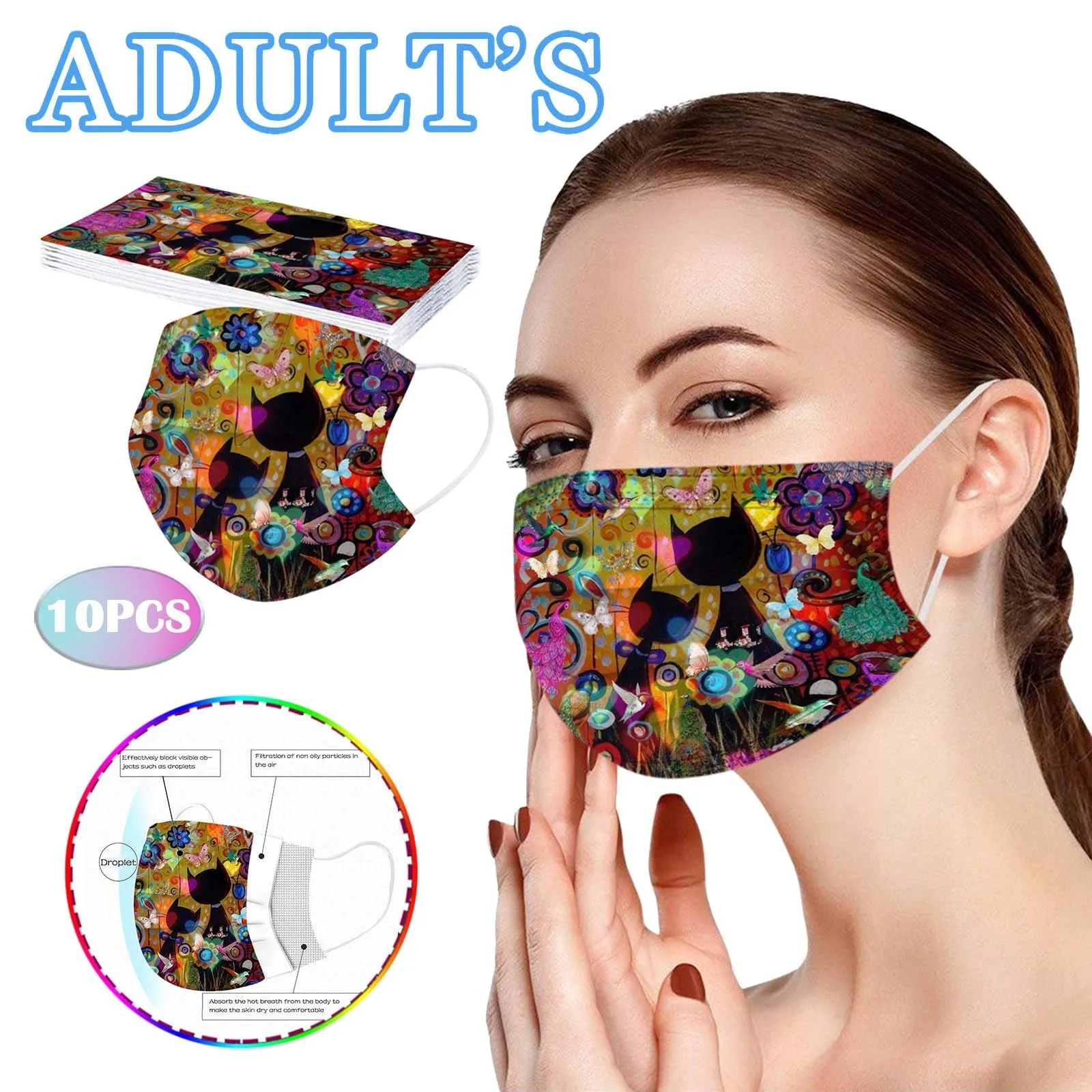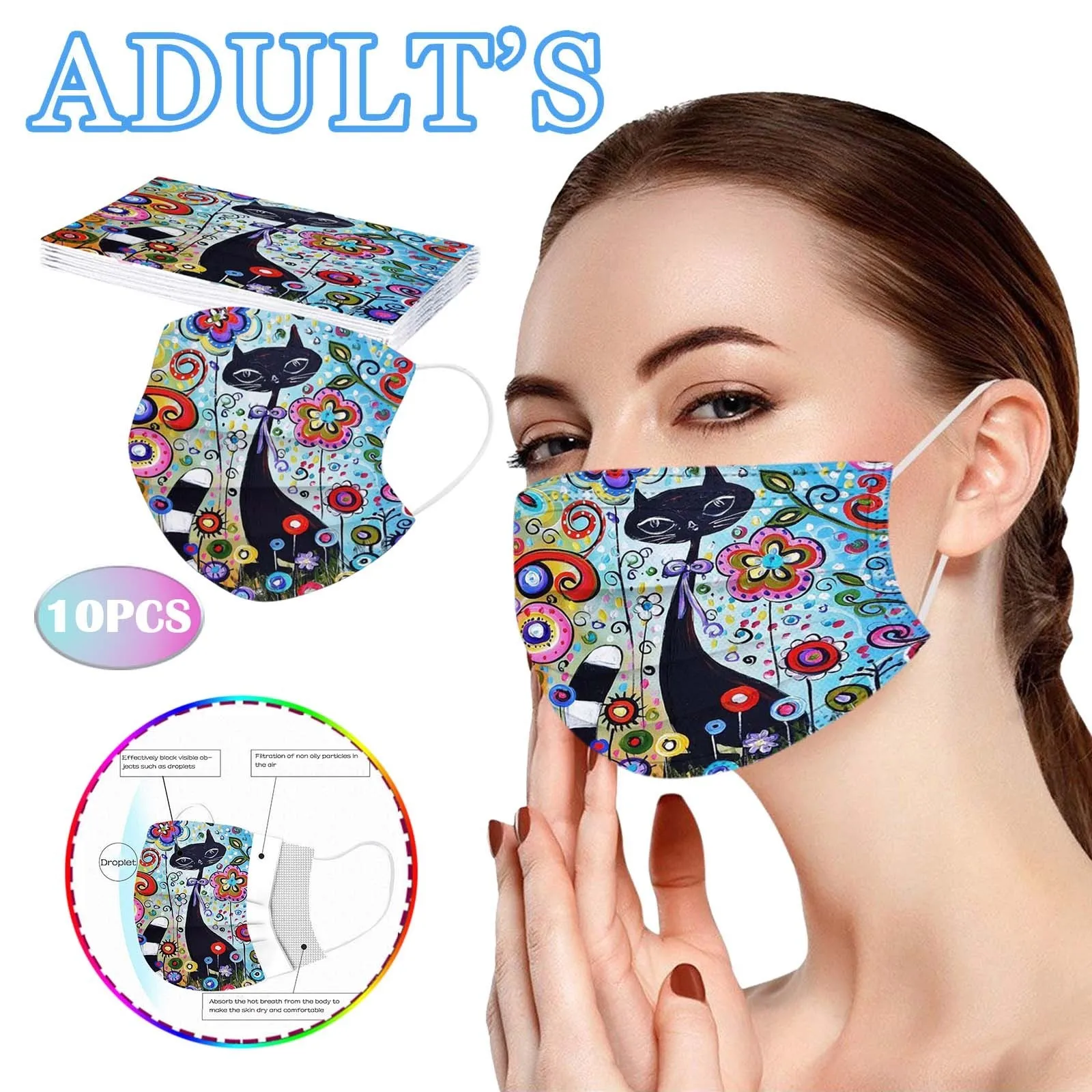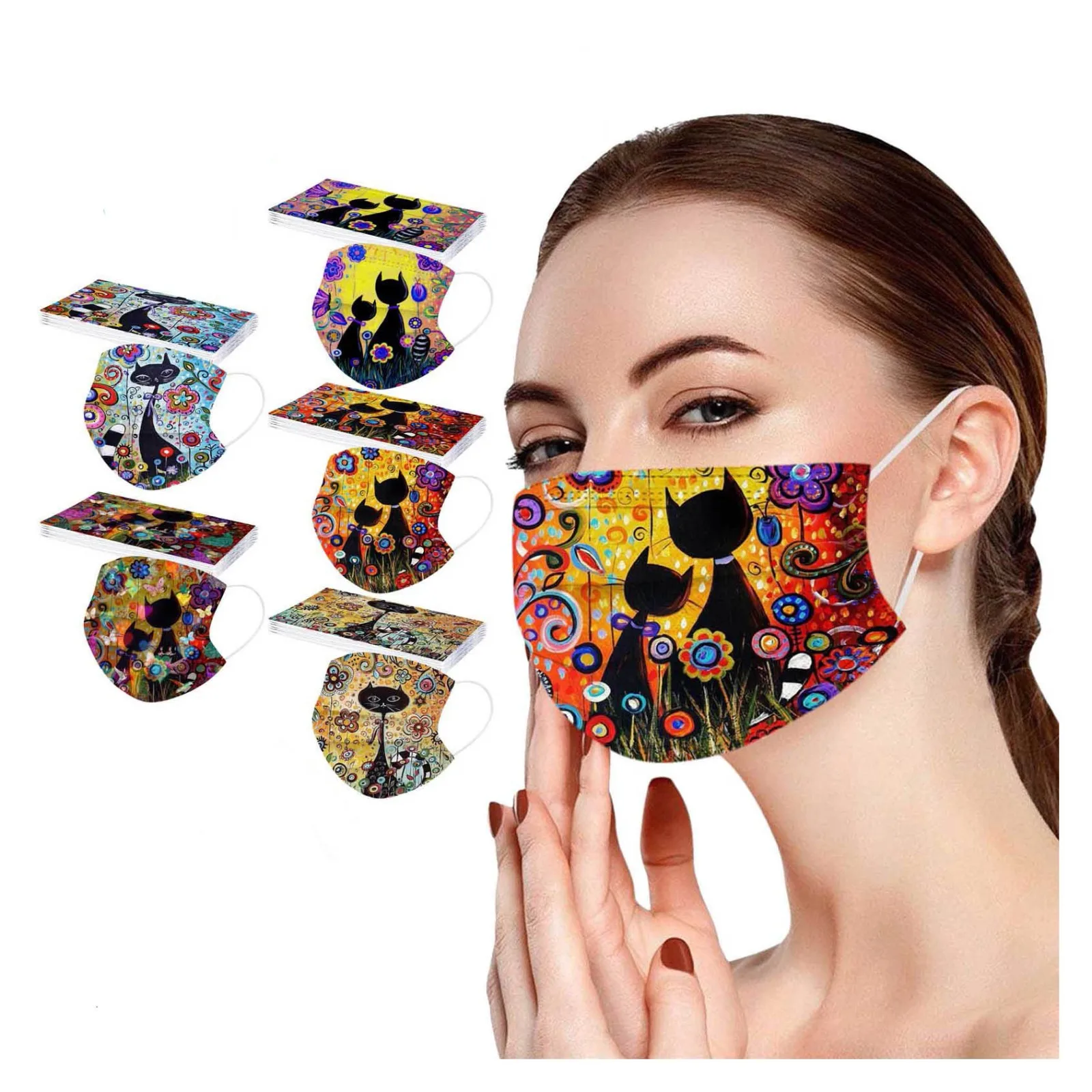 10 шт., милые женские одноразовые маски с принтом кошек, 3-слойная маска из фильтрованной ткани, защитная маска для рта, украшение крышки