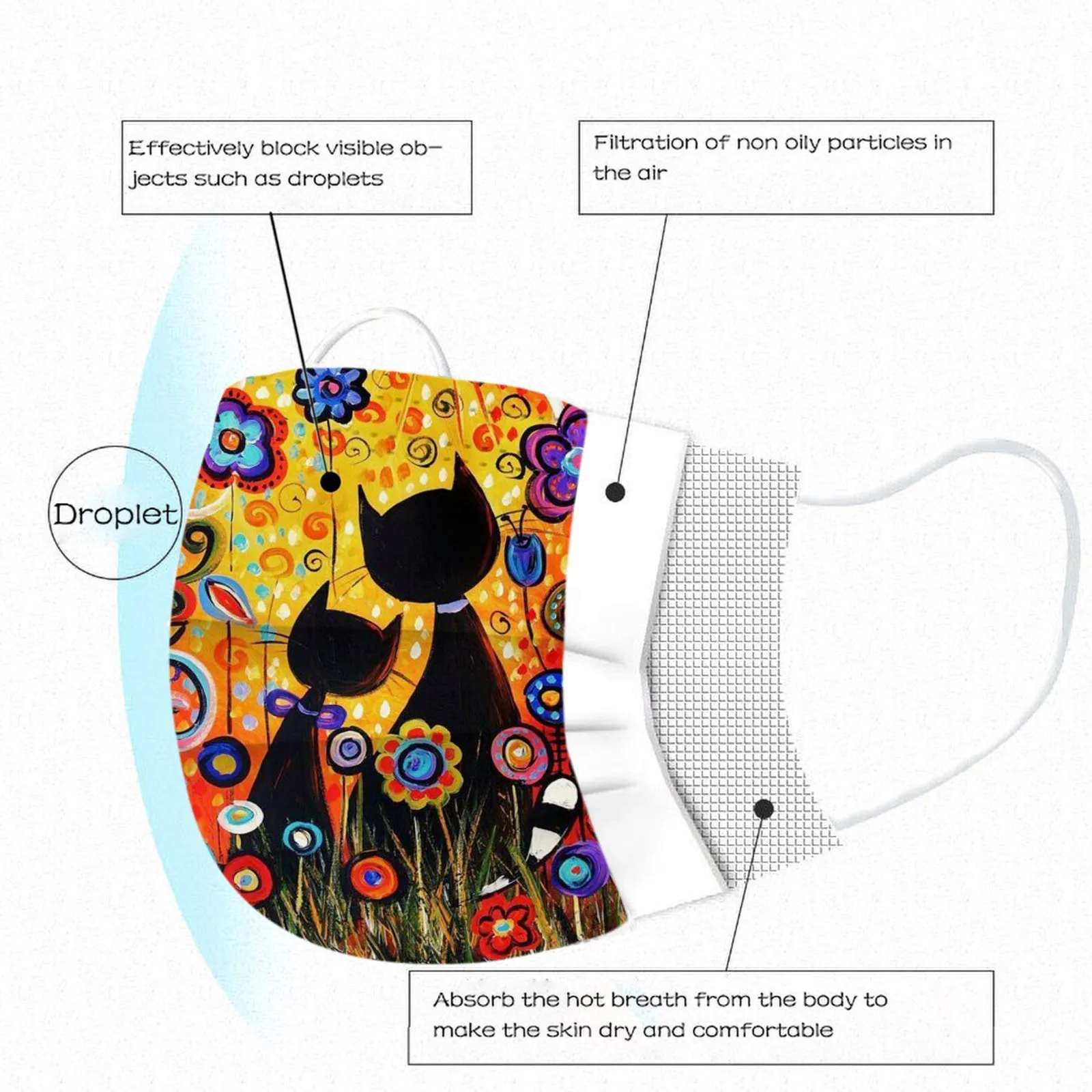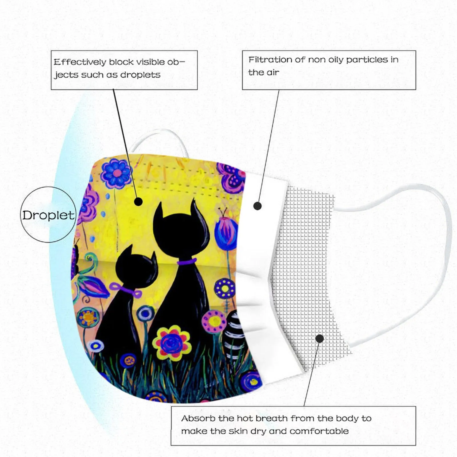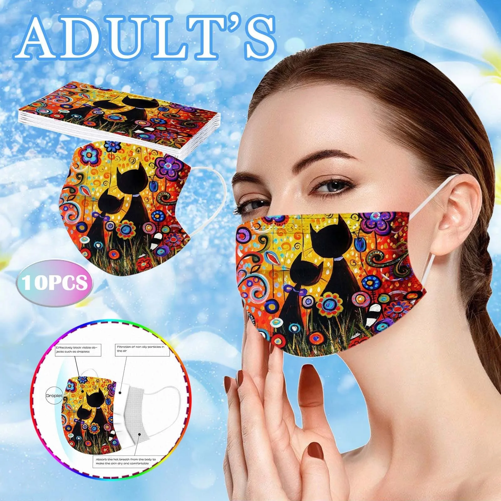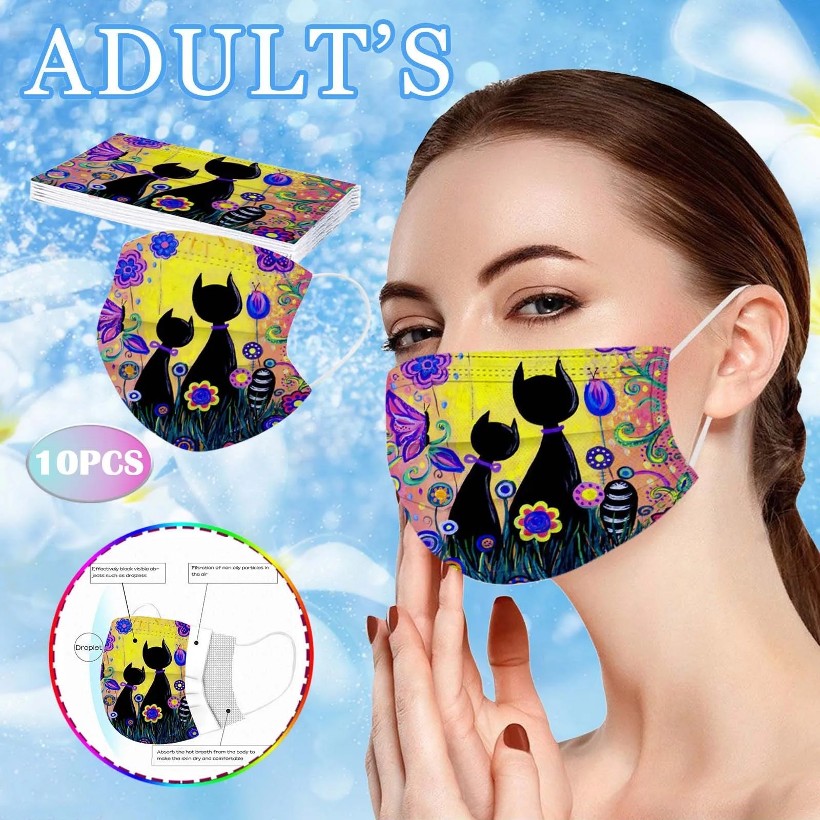 10 шт., милые женские одноразовые маски с принтом кошек, 3-слойная маска из фильтрованной ткани, защитная маска для рта, украшение крышки