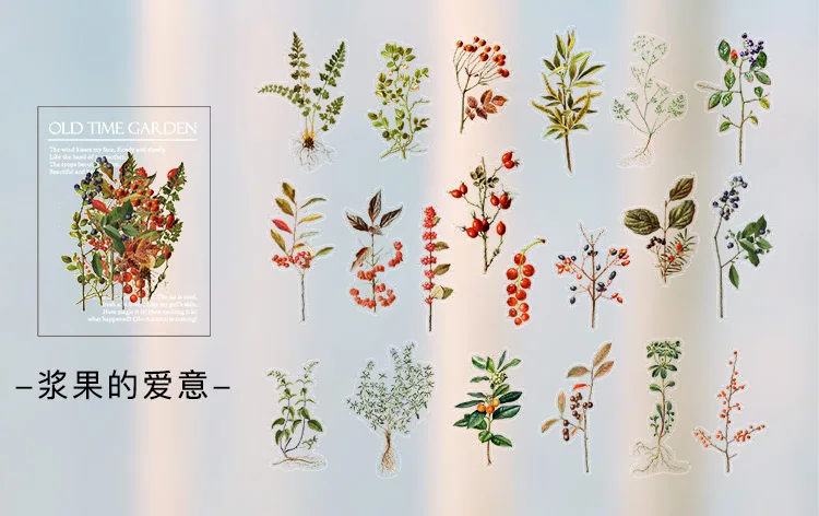 40 шт. в пакете, винтажные наклейки с ягодами, цветами, листьями па...