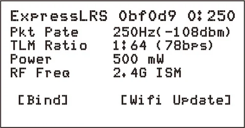 ExpressLRS использует скрипт OpenTX LUA для управления модулем TX, например, привязкой или настройкой. С помощью сценария LUA пилоты могут проверить и настроить некоторые конфигурации модуля Nano RF TX. Для получения более подробной информации, пожалуйста, проверьтеСтраница поддержки.