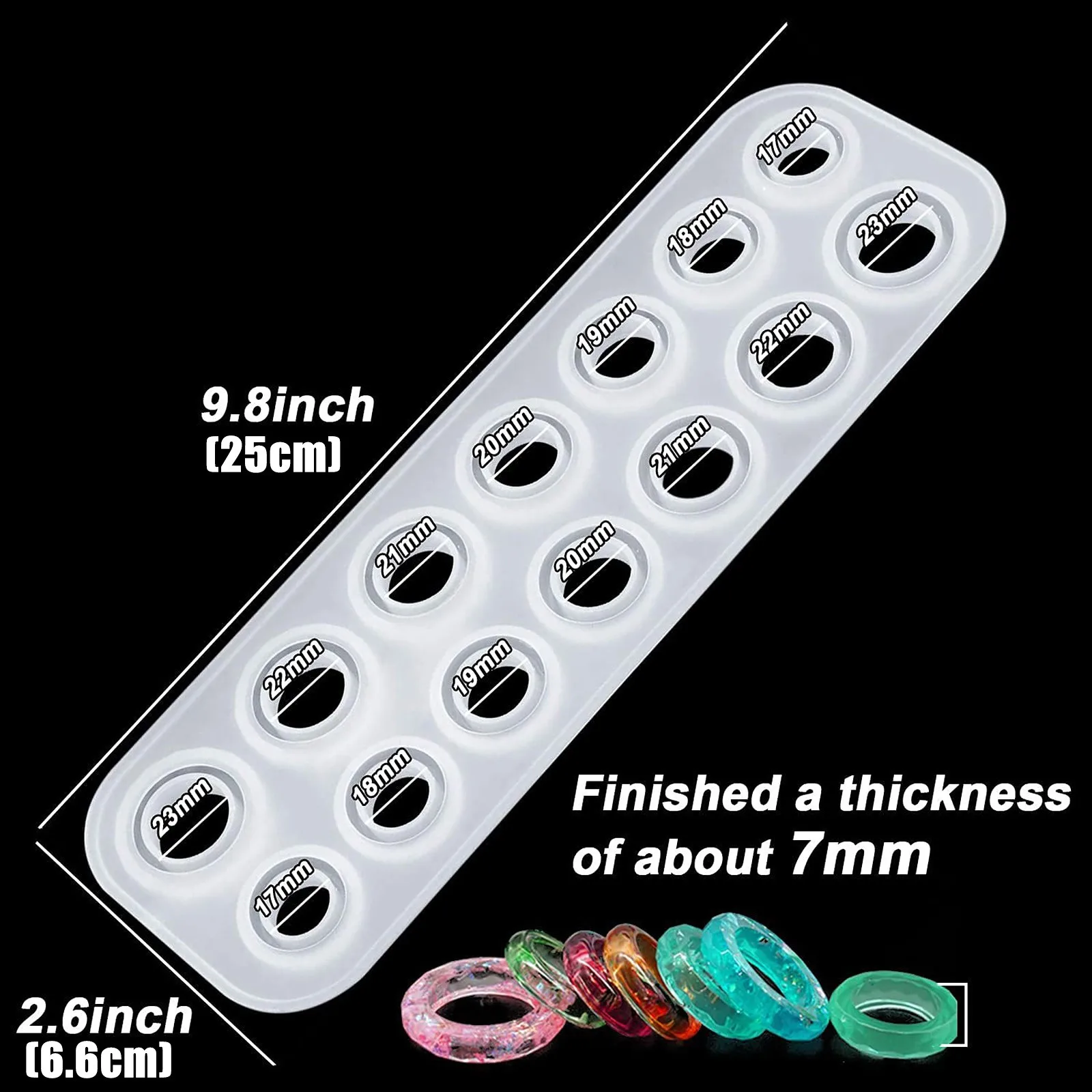 【Sufficient Size】-это в комплекте: 1 колец из смолы пресс-формы, какая длина около 9,8 дюймов и 2,6 дюймов ширина. Размер нашей формы удовлетворяет большинство пальцев, потому что на ней есть 14 размеров кольцевой формы.