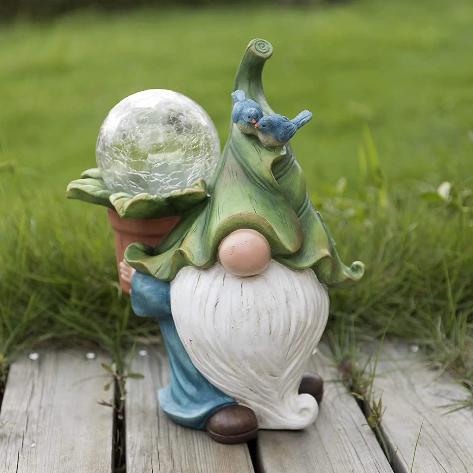 Садовая карликовая статуя-статуя карлика из смолы Магический шар и Солнечный светодиодный светильник