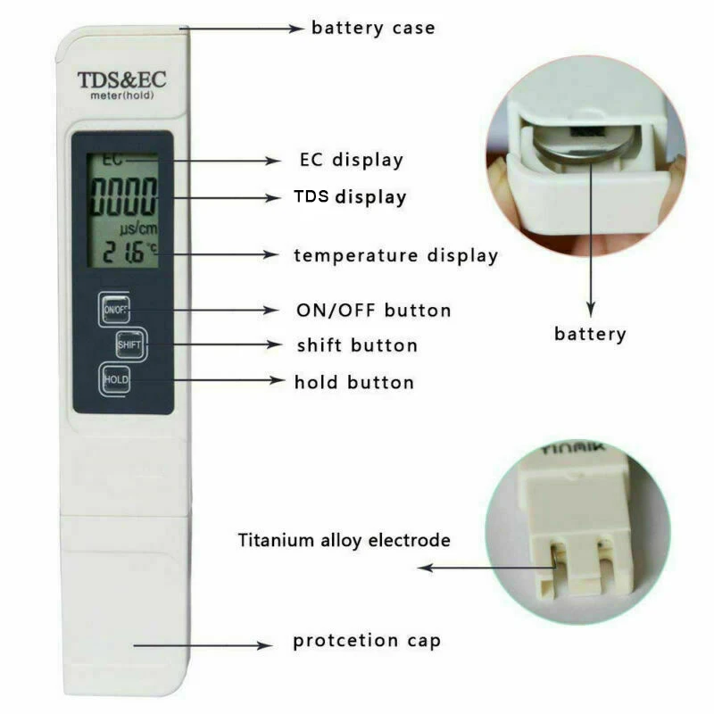 1 измеритель TDS и EC (батарея CR 2032 в комплект не входит)