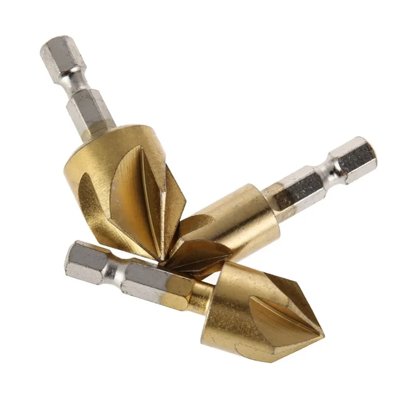 3 шт. HSS 5 Флейта 90 ° шестигранное сверление хвостовиком фаски