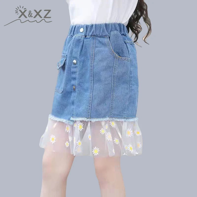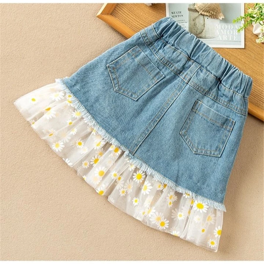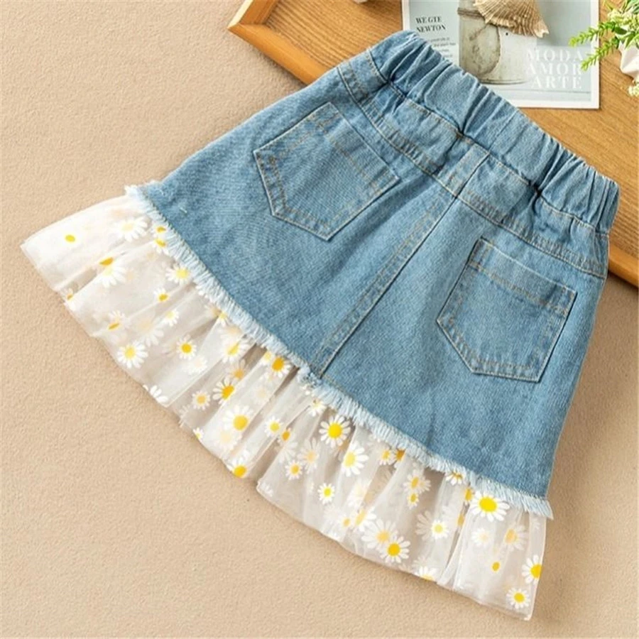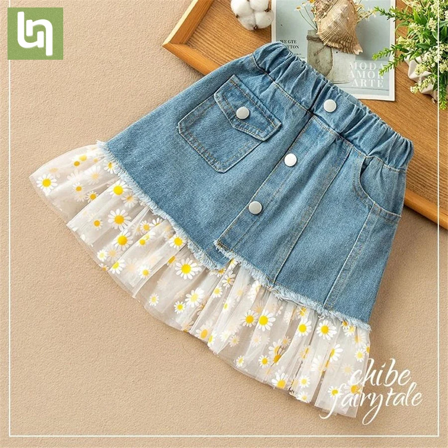 Модные джинсовые юбки, летние детские трапециевидные мини-юбки с вы...