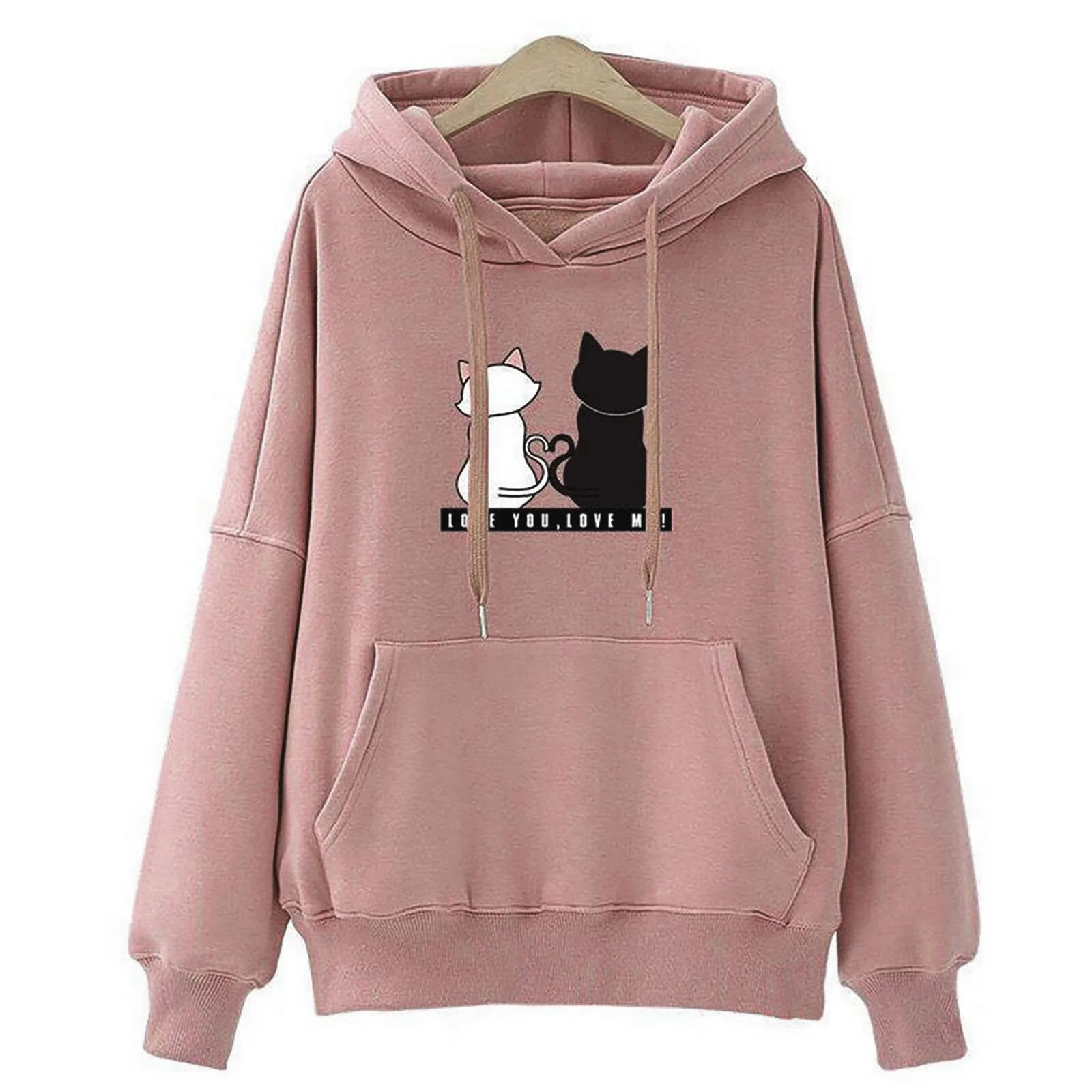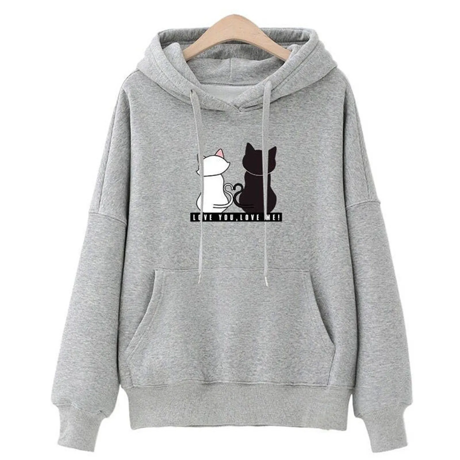 Женские толстовки с мультяшным принтом, толстовки с длинным рукавом, Осень-зима 2021, модная уличная одежда большого размера, пуловеры с Кулиской