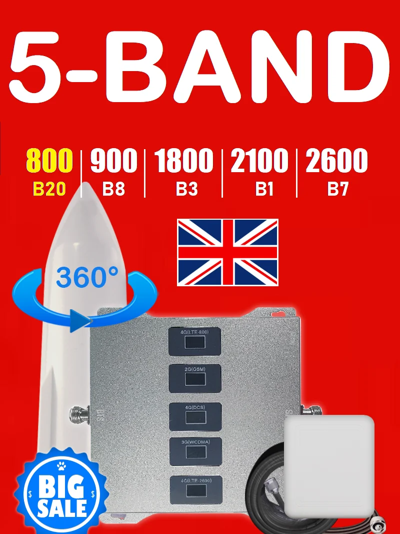 5-полосный сотовый усилитель LTE B20 800 900 1800 2100 2600 B7 GSM 2G 3G 4G